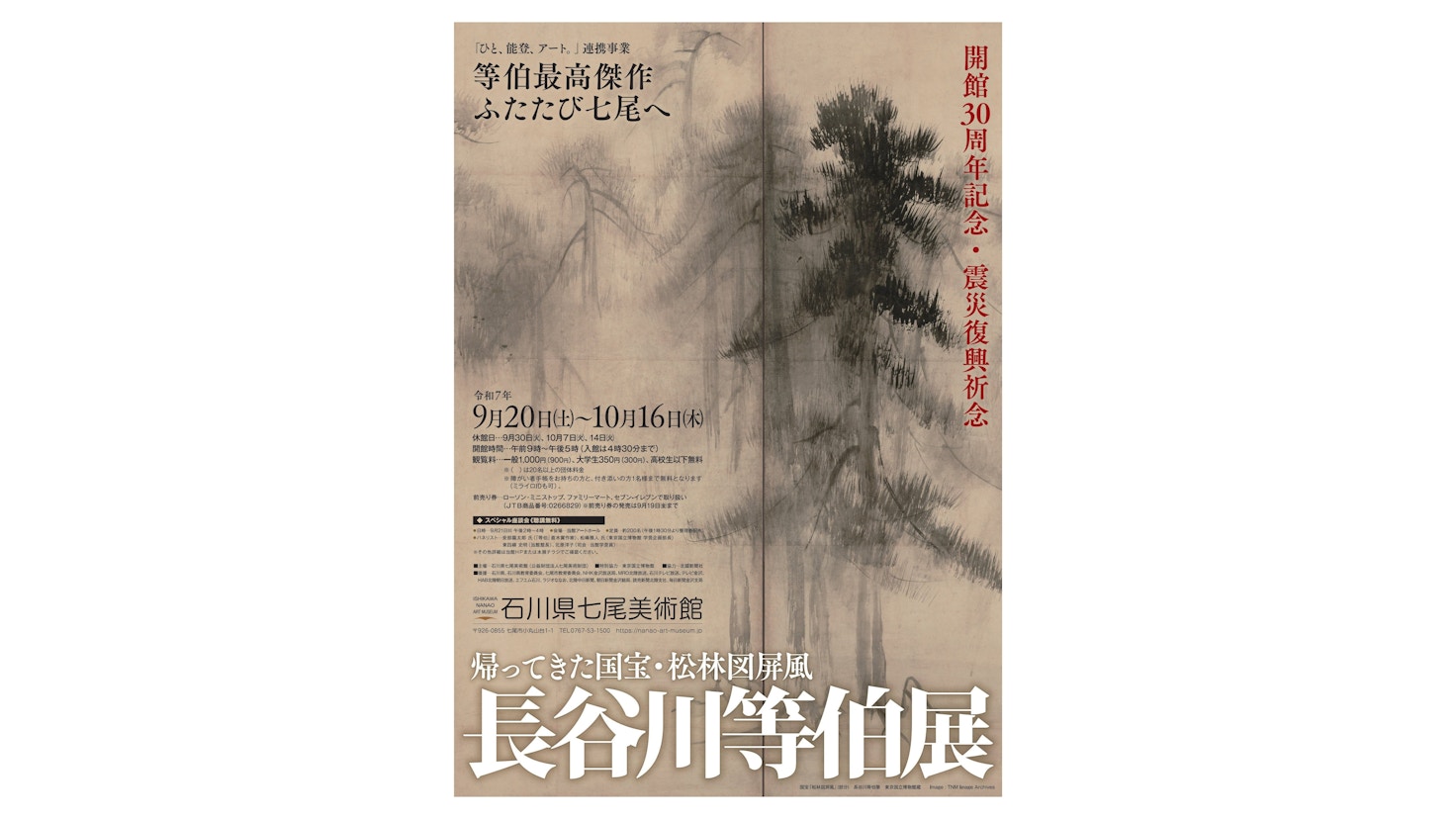 石川県七尾美術館で「開館30周年記念・震災復興祈念 長谷川等伯展 ~帰ってきた国宝・松林図屏風~」が開催されている。