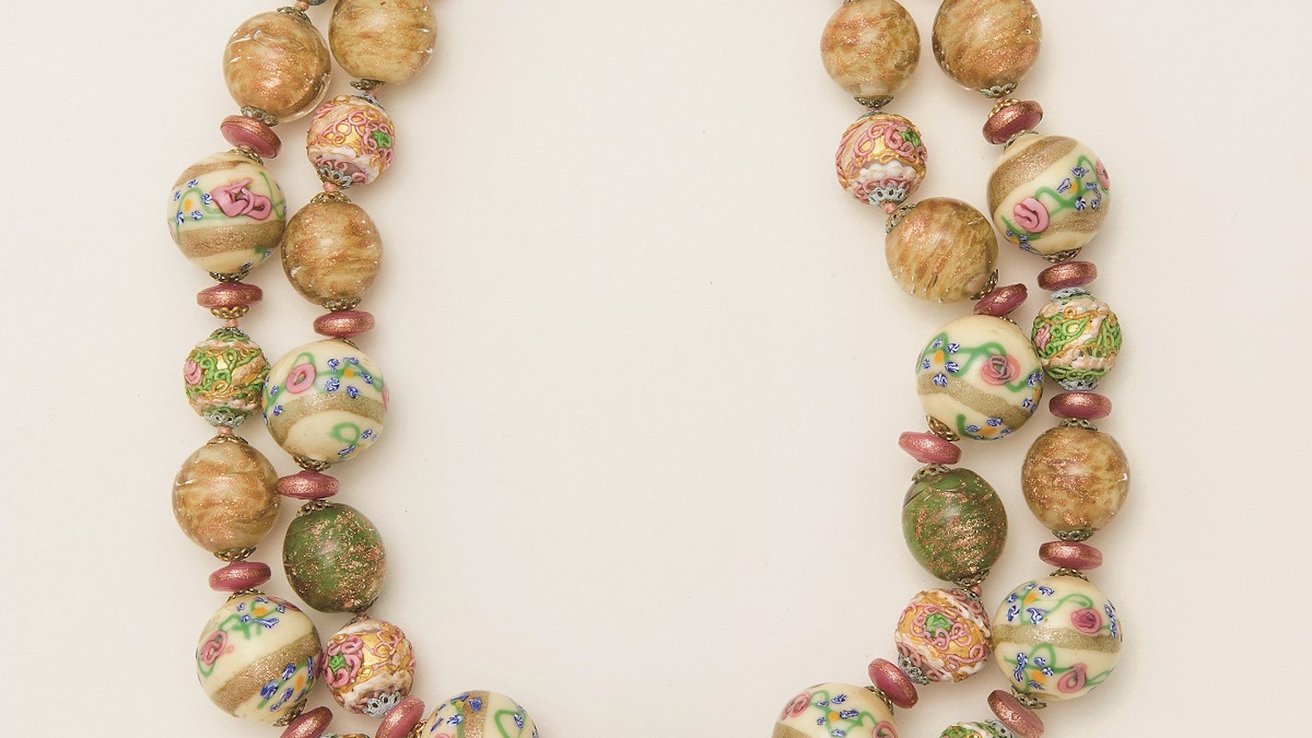 本展では、小瀧千佐子氏のコレクションより、16〜20世紀までにヴェネチアン・ビーズでつくられたアクセサリーなど約120点を展示。ヴェネチアン・ビーズの歴史を概観するとともにその魅力を伝える。