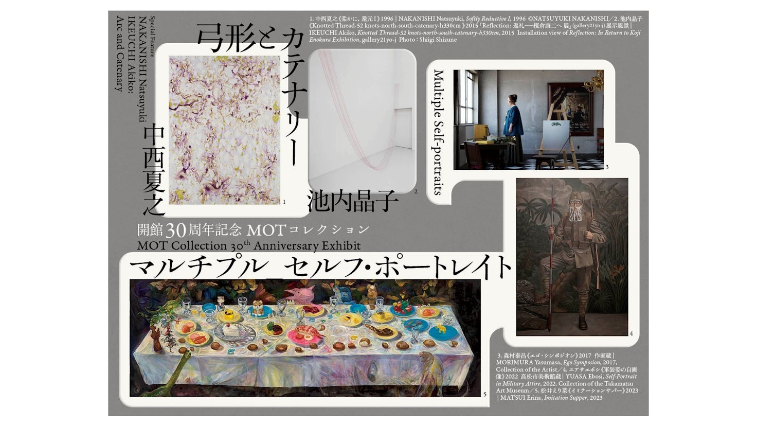 東京都現代美術館で「開館30周年記念 MOTコレクション マルチプル_セルフ・ポートレイト 中西夏之 池内晶子 —弓形とカテナリー」が開催される。
