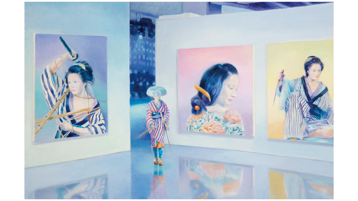 銅版画家として活動を続けてきた小浦が、本展ではこれまでの表現を広げた油彩作品18点を紹介する。青を基調とした画面に、情景や女性像が描かれた作品群で構成される。