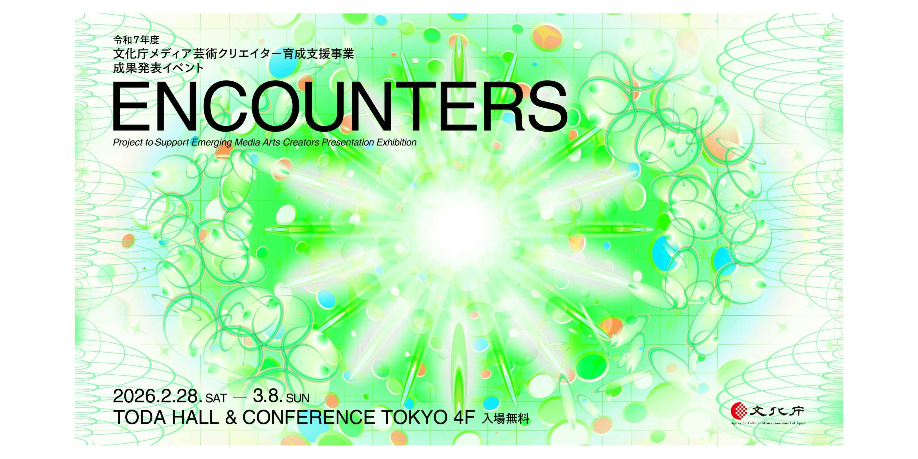 文化庁が次世代の「メディア芸術」を担うクリエイターを支援する「メディア芸術クリエイター育成支援事業」。その令和7年度の成果発表イベント「ENCOUNTERS」が、東京・京橋のTODA HALL & CONFERENCE TOKYOで今年も開催される。