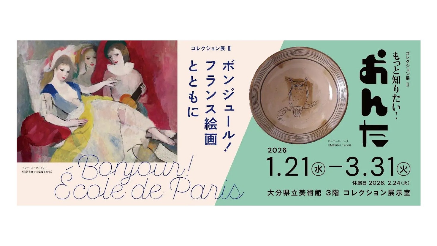大分県立美術館で「コレクション展Ⅱ【特集展示】ボンジュール!フランス絵画とともに/もっと知りたい!おんた」が開催されている。