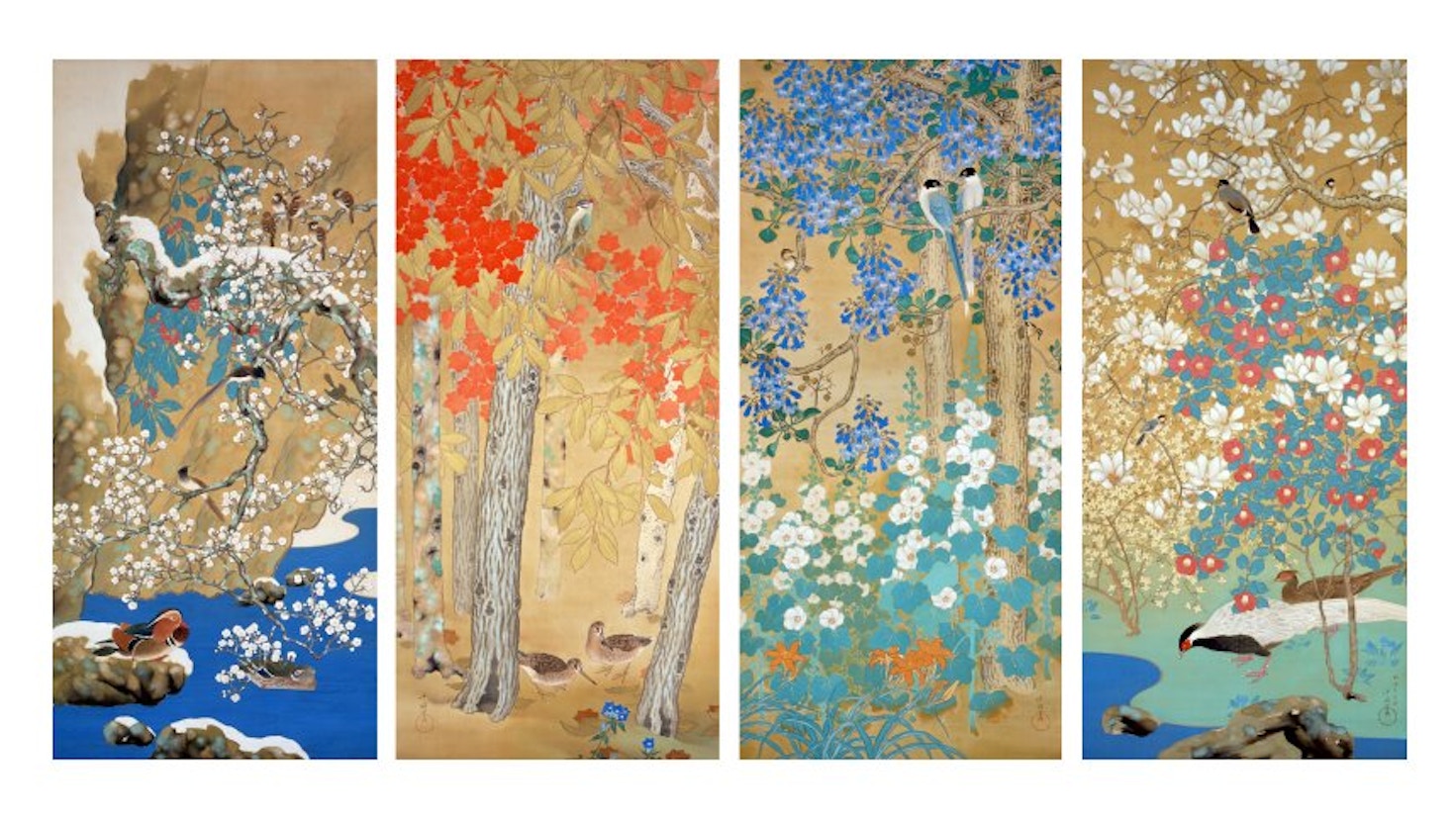 さらに展示室では、淡い色調で花の量感を表現した川端龍子《牡丹》(1961)、四季の花々を画面いっぱいに配した荒木十畝《四季花鳥》(1917)など、画家ごとの個性が際立つ作品群も紹介。花という共通の主題を通して、日本画における表現の幅と奥行きが浮かび上がる構成となる。