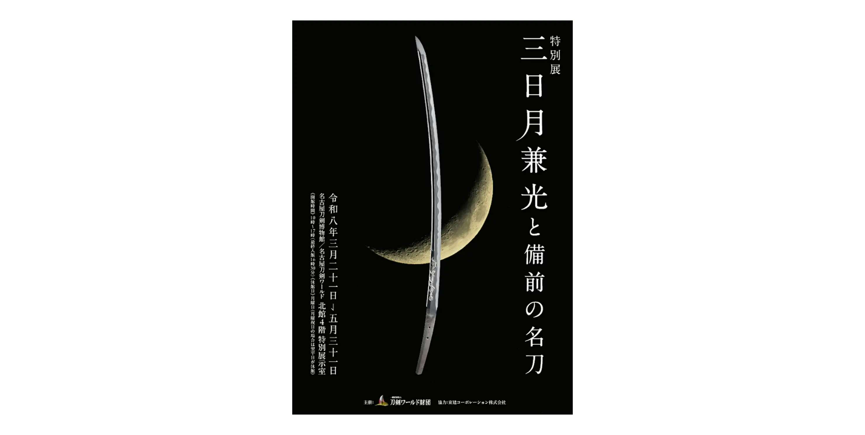 本展では、南北朝時代に備前長船派の刀工・兼光によってつくられ、戦国大名・上杉謙信ゆかりの刀として伝来した太刀「三日月兼光」を展示。名古屋刀剣博物館の所蔵となったことを記念し、同館が所蔵する備前の名工たちによる作品とあわせて公開する。