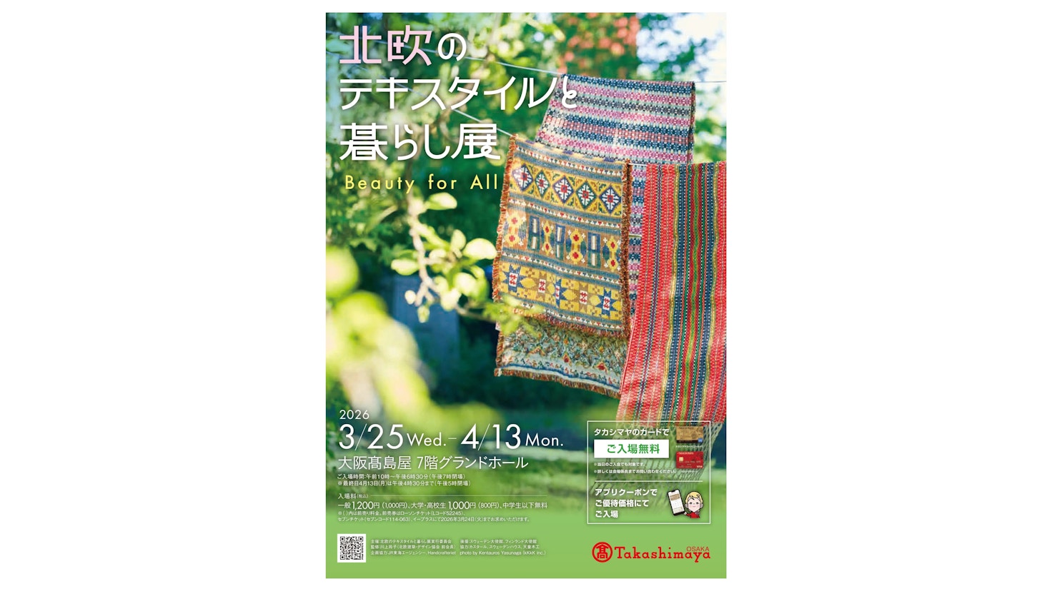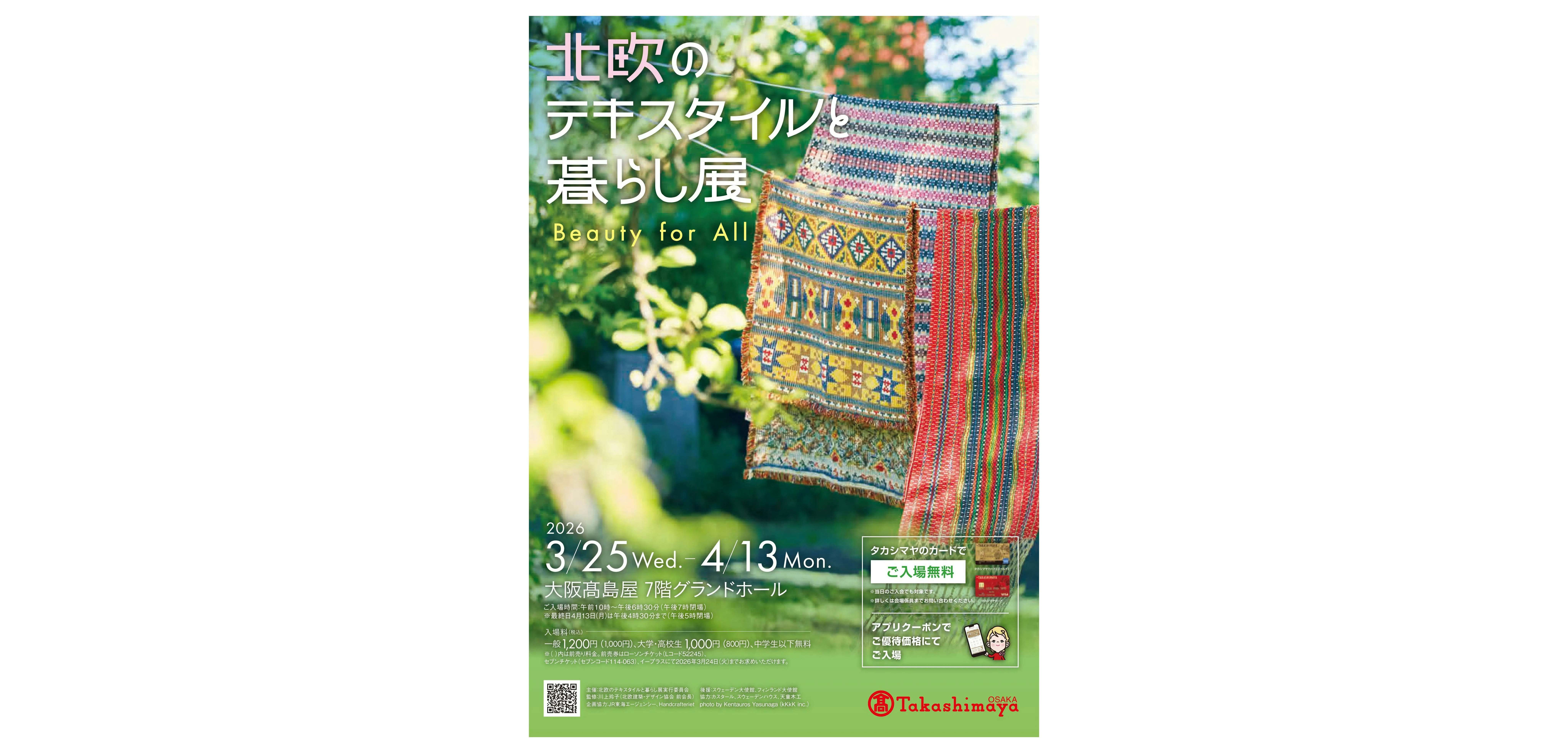大阪高島屋 7階グランドホールで「北欧のテキスタイルと暮らし展 ― Beauty for All ―」が開催される。