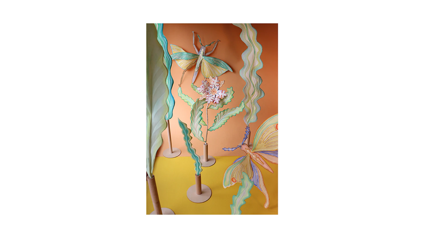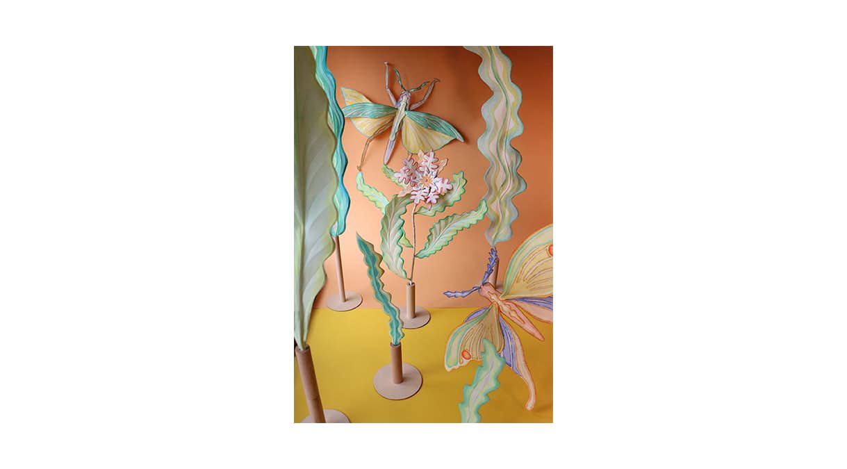 この展示では、花、虫、太陽といったモチーフを通して、その「あいだ」にあるものを形にしている。