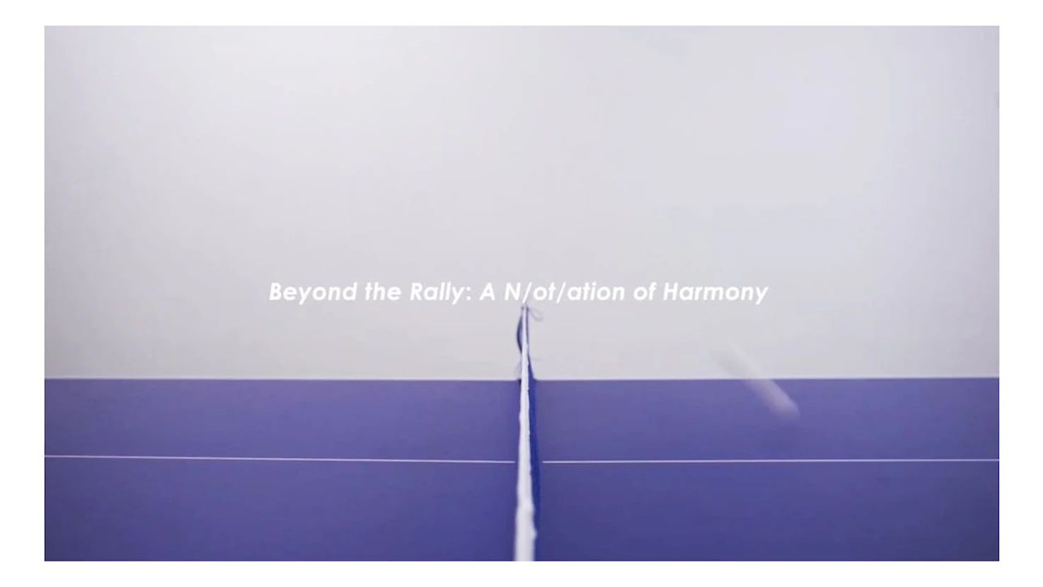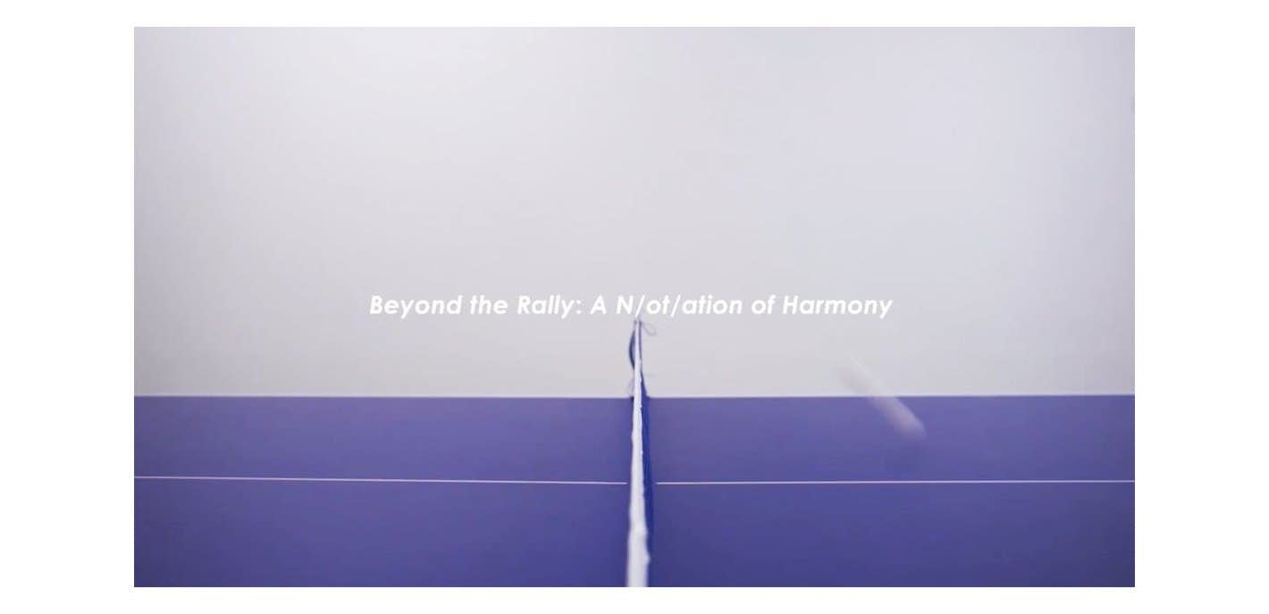 卓球のラリーという往復運動をモチーフとした映像作品とペインティング作品を通して、往復するボールの軌跡や打球音、身体のリズムを提示。異なる背景や価値観を抱えた人々が同じ空間と時間を共有する在り方について示す。