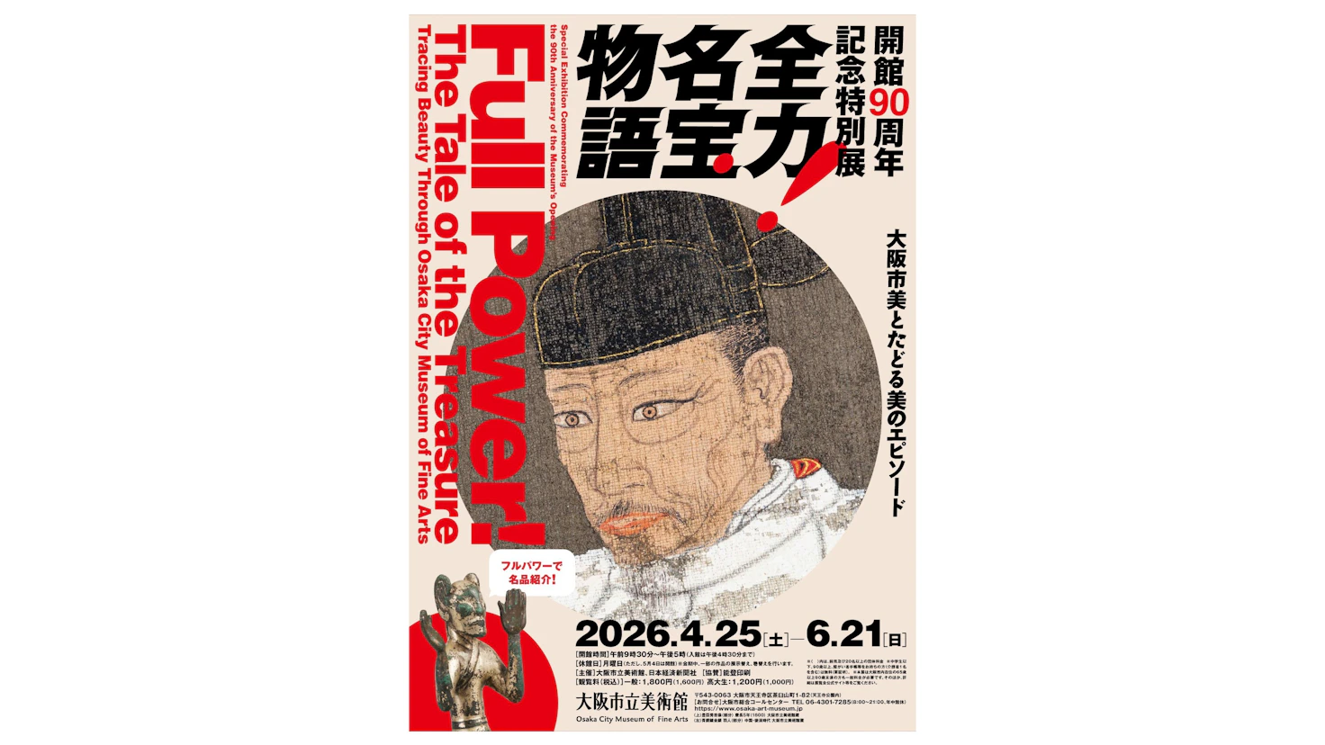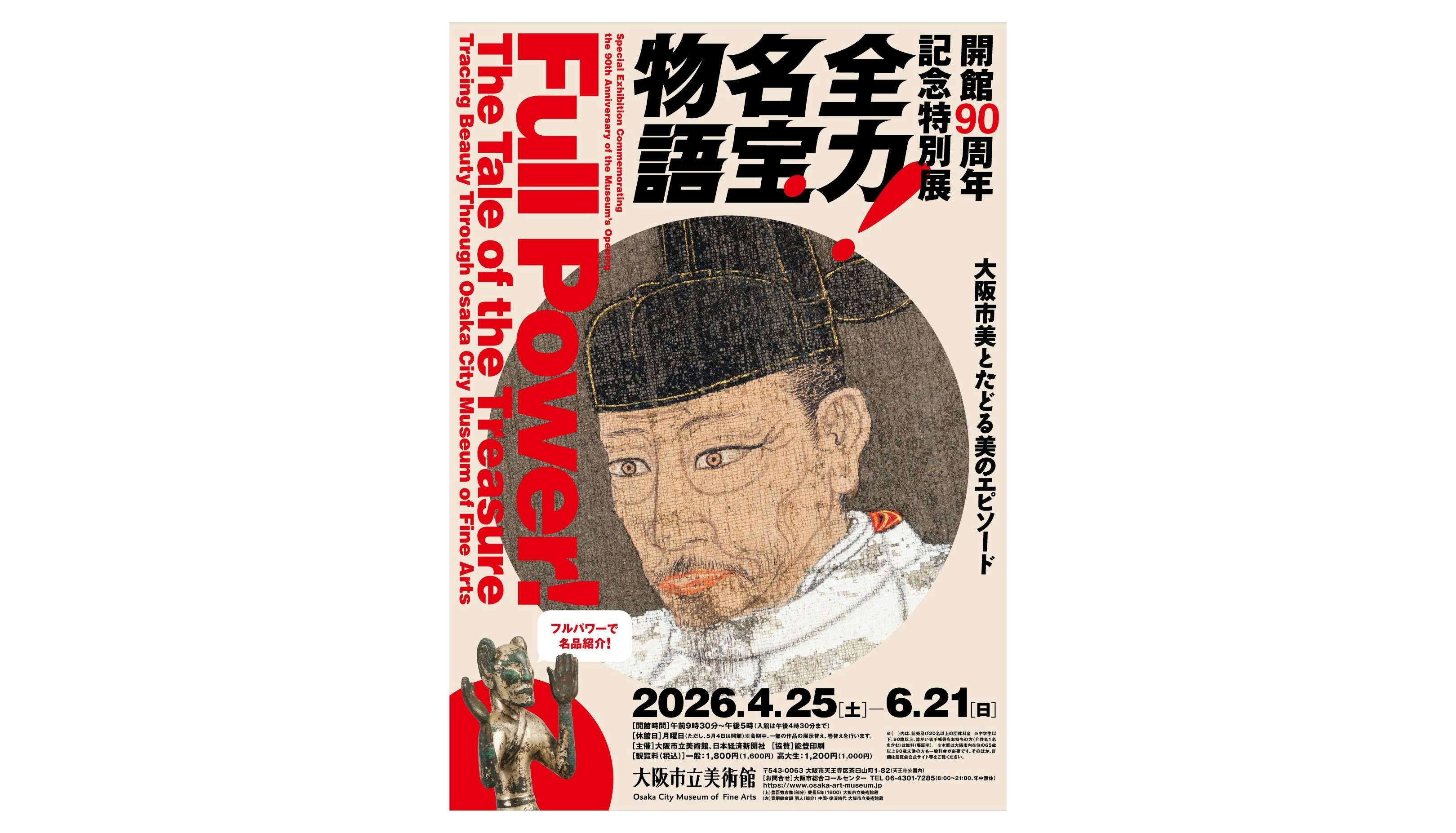 大阪市立美術館で、開館90周年記念特別展 「全力!名宝物語 ―大阪市美とたどる美のエピソード」が開催される。