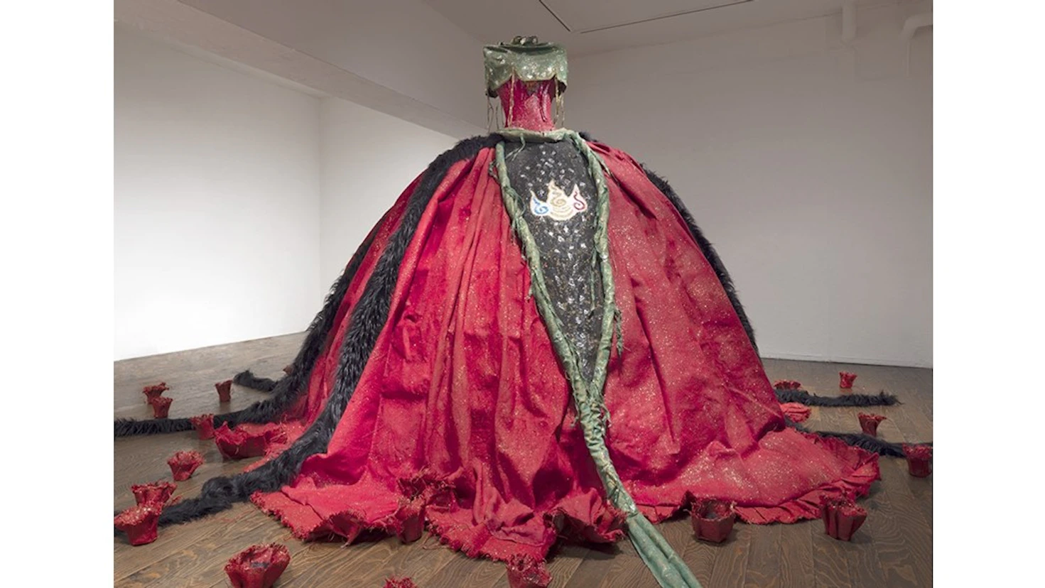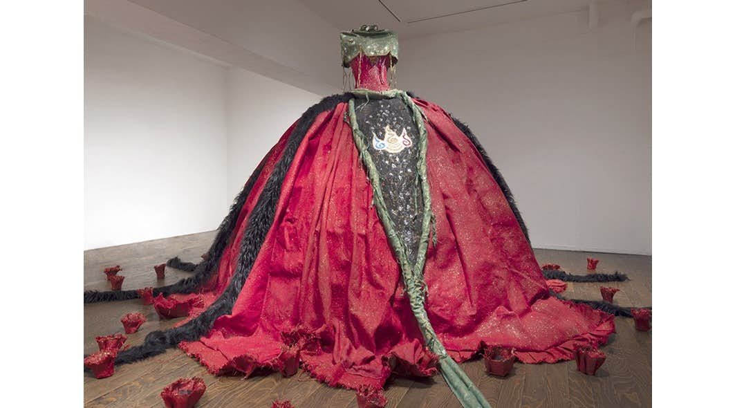 本展では、ドレスの大作を発表。タイトルである「月読 ー 明けない夜」の「月読」とは、古代の伝説に登場する月あるいは夜の世界を統括する神の名前に由来している。近年の世界情勢を「明けない夜の闇」と捉え、そのなかに光る希望を作品で表現している。