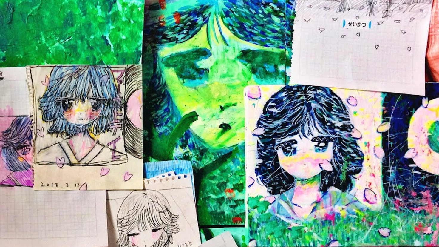 弓指は、自身の母親の自死について描いた巨大な絵画《挽歌》(新芸術校第1期成果展覧会出品、2016)以降、一貫して「自殺」をテーマに作品を制作。「Barrack Out」展(2016)での壁画制作、「Death Line」展(2017)のキュレーションなど、注目すべき活動を続けてきた。