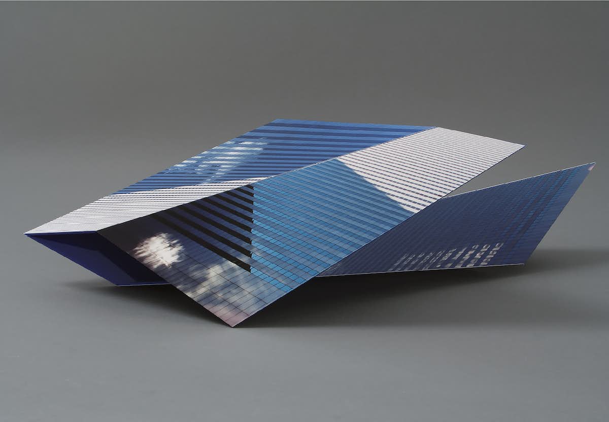 ニューヨークや東京を拠点に、都市空間に目を向けた写真作品に取り組む齋木克裕。空や建築といった風景を撮影した写真を立体的に組み合わせ、構造物を構成している。