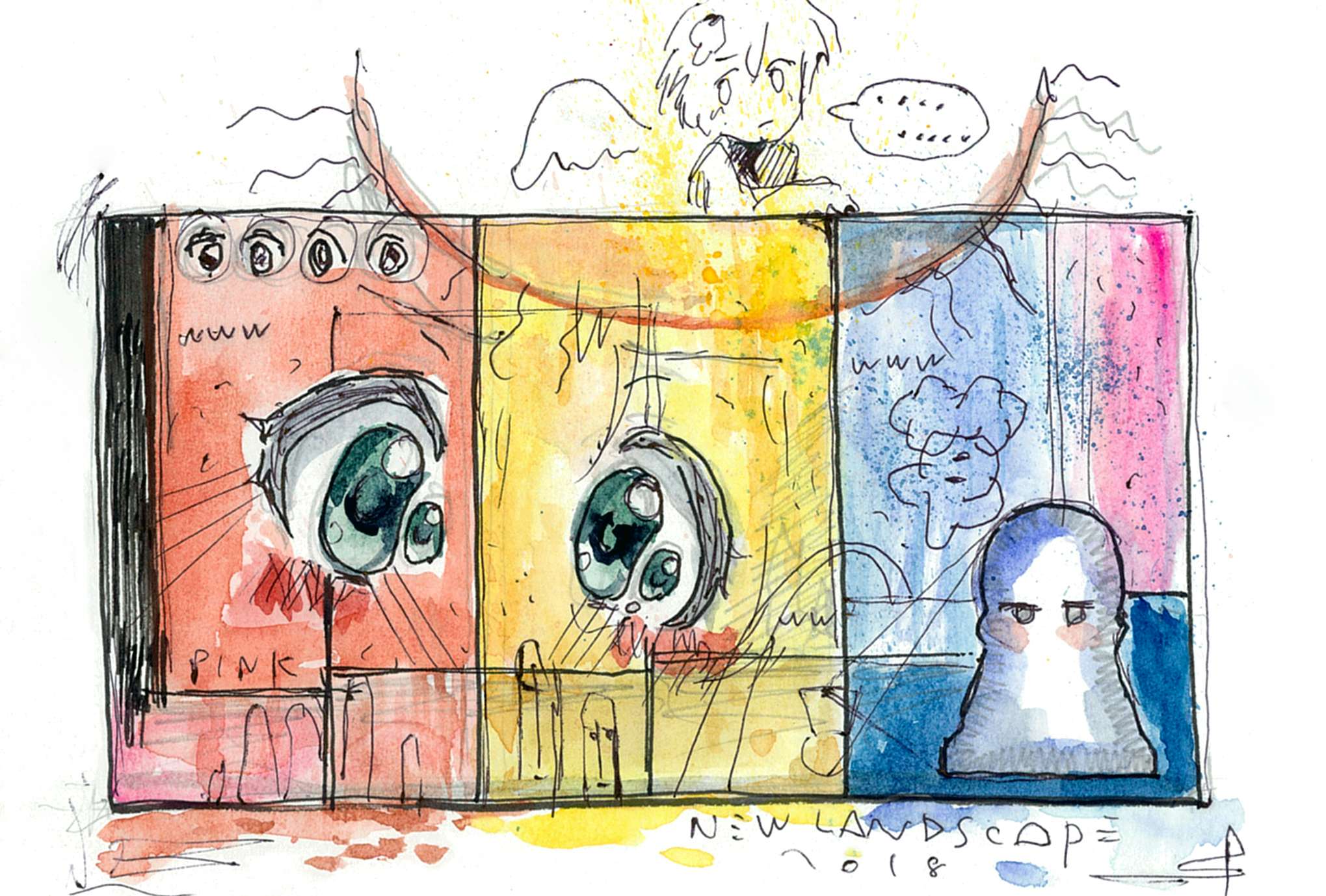 本展では、過去5年ほどの活動の中で制作した大作に加え、改めて日本のポップカルチャーへ目を向けた新作を発表する。