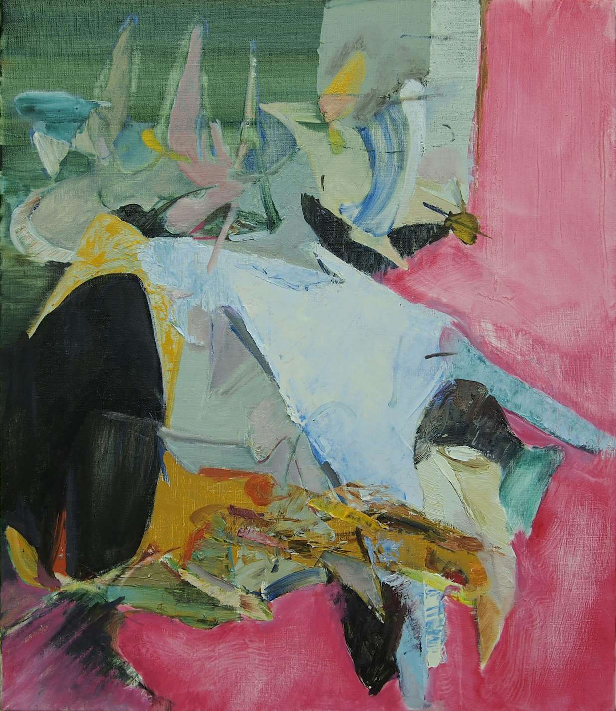 ヒロマート・ギャラリーで初めて樽井を紹介する本展では、描き溜めたドローイングの1点をキャンバスに描き移し、その状態を「ぬりえ」に見立てた最新シリーズから新作の油彩作品を発表。即興的に反応する描画によって生み出された背景と図の曖昧な境界が、思わぬイメージをもたらす。