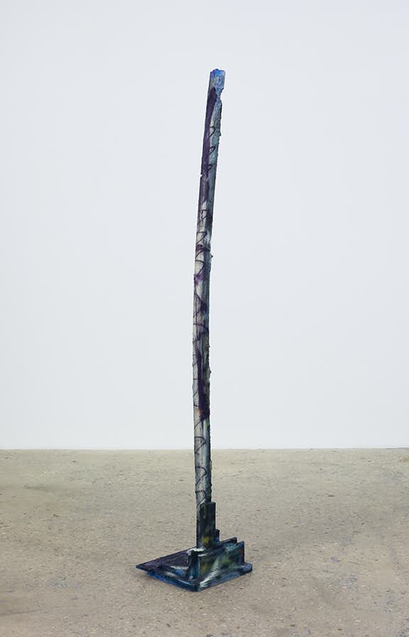 ハリソンは1966年生まれ、ニューヨークを拠点に活動。近年は建物に使用できない捻れた木材を自身の立体作品の礎とし、彩りをまとわせた上で、それらをセメントでコーティングすることで直立させる作品を制作している。