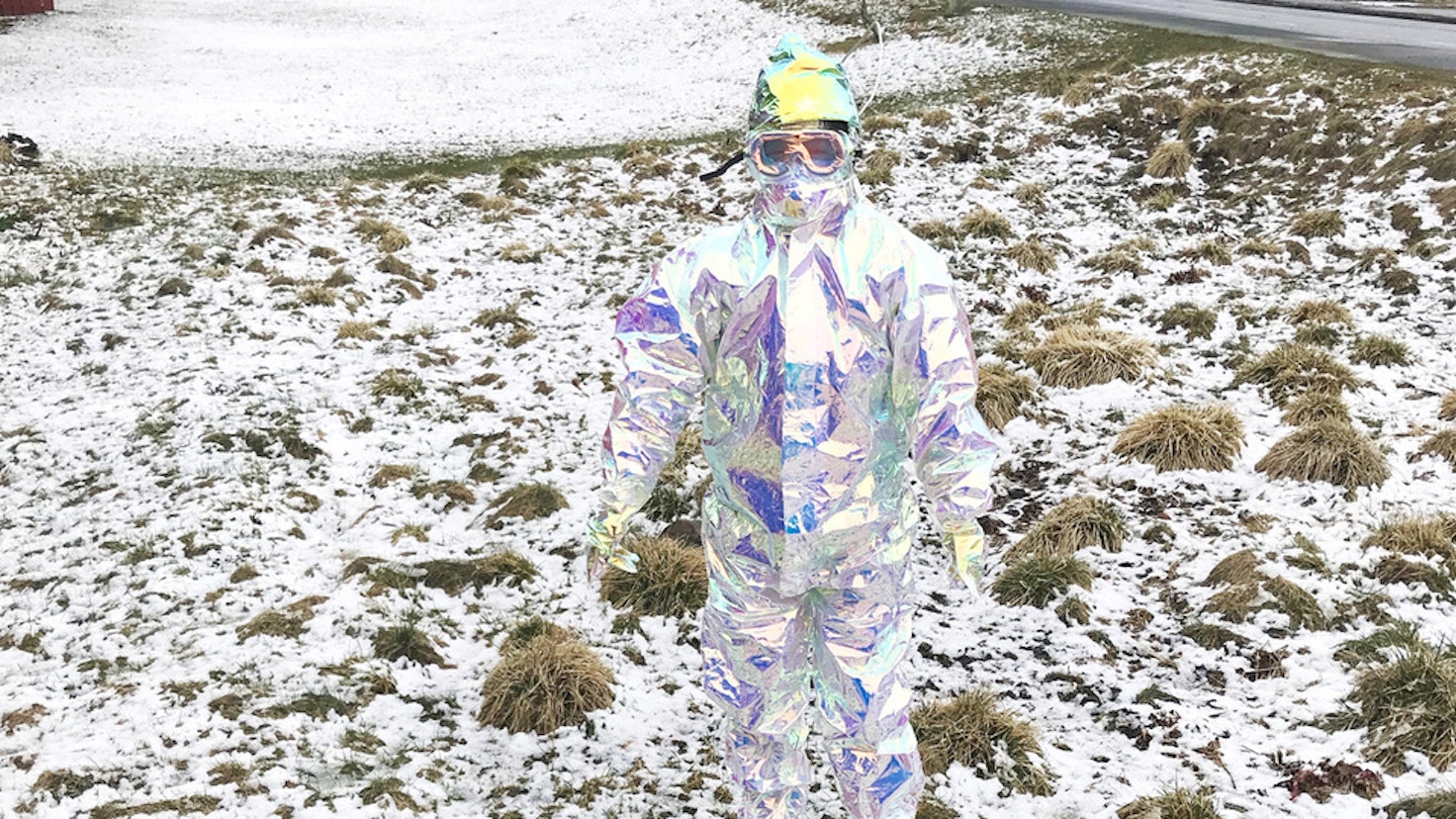 川口が今回のパフォーマンスに選んだ舞台は、火と氷の島国・アイスランド。メタリックな衣を纏い、ゴーグルをつけた異邦人扮する川口が登場し、四方を半透明のビニールで覆われた直方体のモノリスの中で、原始、洞窟内で初めて絵を描いた人のように、手に筆を持つ。これらの体験を照らし出す空間構成が本展の作品となる。