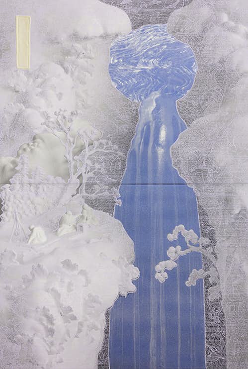 本展では、岐阜県の名瀑を描いた葛飾北斎の《諸国瀧廻り 木曽路ノ奥阿弥陀ヶ瀧》、琳派を代表する作家のひとり、酒井抱一の《夏秋草図屏風》などをモチーフにしたインタリオ・オン・フォト作品の展示に加え、その制作過程で生じる立体とドローイングもあわせて公開する。