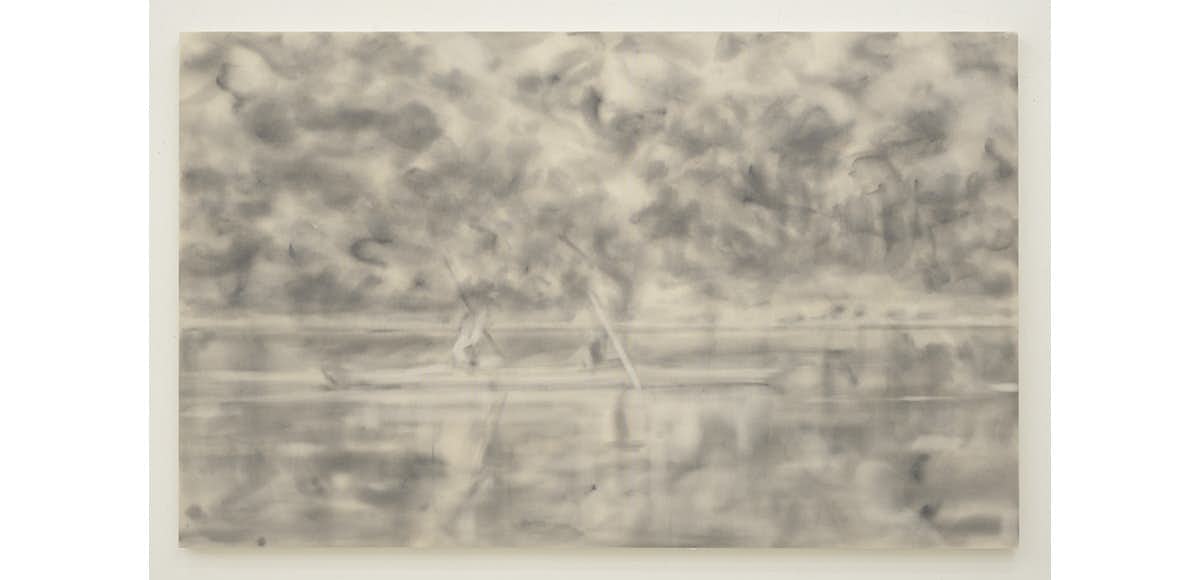 様式としての「絵画の終わり」ではなく、今日の社会における「芸術としての絵画の終わり」に対する危機感を抱いているという丸山は、今回の展覧会タイトル「ラスコーと天気」に「描く」という行為に対する問題意識を忍ばせた。未だに解明されていないというラスコー洞窟内の旧石器時代の壁画と、本展で新たに発表される丸山のモノクローム絵画の制作に使用したラスコー社の絵具。「ラスコー」という象徴的な名前を持つ既製品の画材を使うことで不意に思い起こされた、2万年前と現在との時間的な隔たりは、なぜ人は絵を描くのかという根元的な問いへとつなげられる。