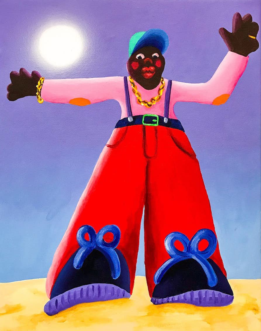 本展では、iPadに描いた絵をアクリル絵具、エアブラシを用いてキャンバスに描き直す近年のシリーズや新作のペインティングを展示。さらに、初公開となる3Dペインティングも披露する。