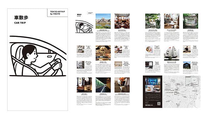 なお、会場では日本のカルチャーをアート&デザイン好きの目線で紹介してきた、ビジュアルガイドブック「TOKYO ARTRIP」とのコラボレーション・フリーペーパー『TOKYO ARTRIP by VOLVO』も配布。聖徳記念絵画館や古民藝もりたなど、「TOKYO ARTRIP」セレクトによる青山・表参道近辺のショップや、デザインの優れた建築に加え、本山がフィールドワークで訪れた場所を含む18のスポットが掲載される。