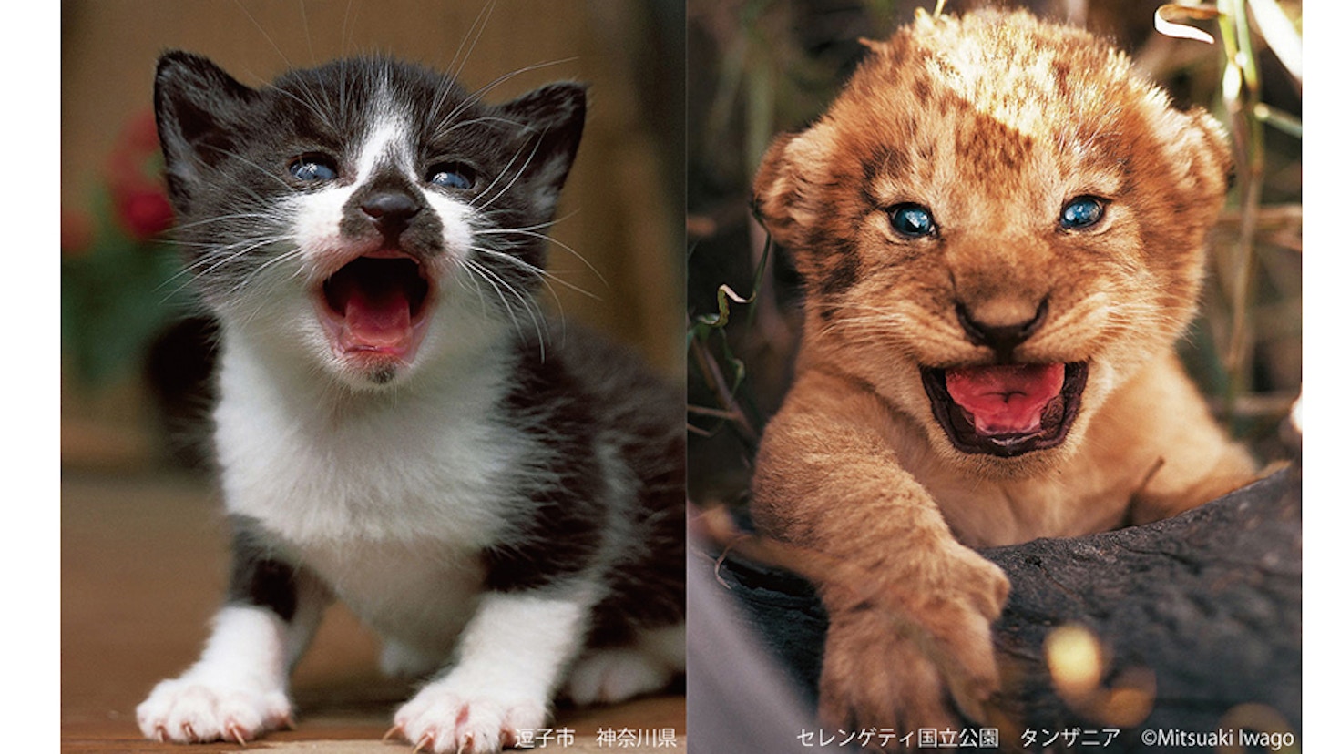 いっぽうで、岩合は身近な存在であるネコの撮影も40年以上のライフワークとして撮り続けるほか、百獣の王と呼ばれ、人間と無縁の野生の世界に生きるライオンも継続して撮影している。
