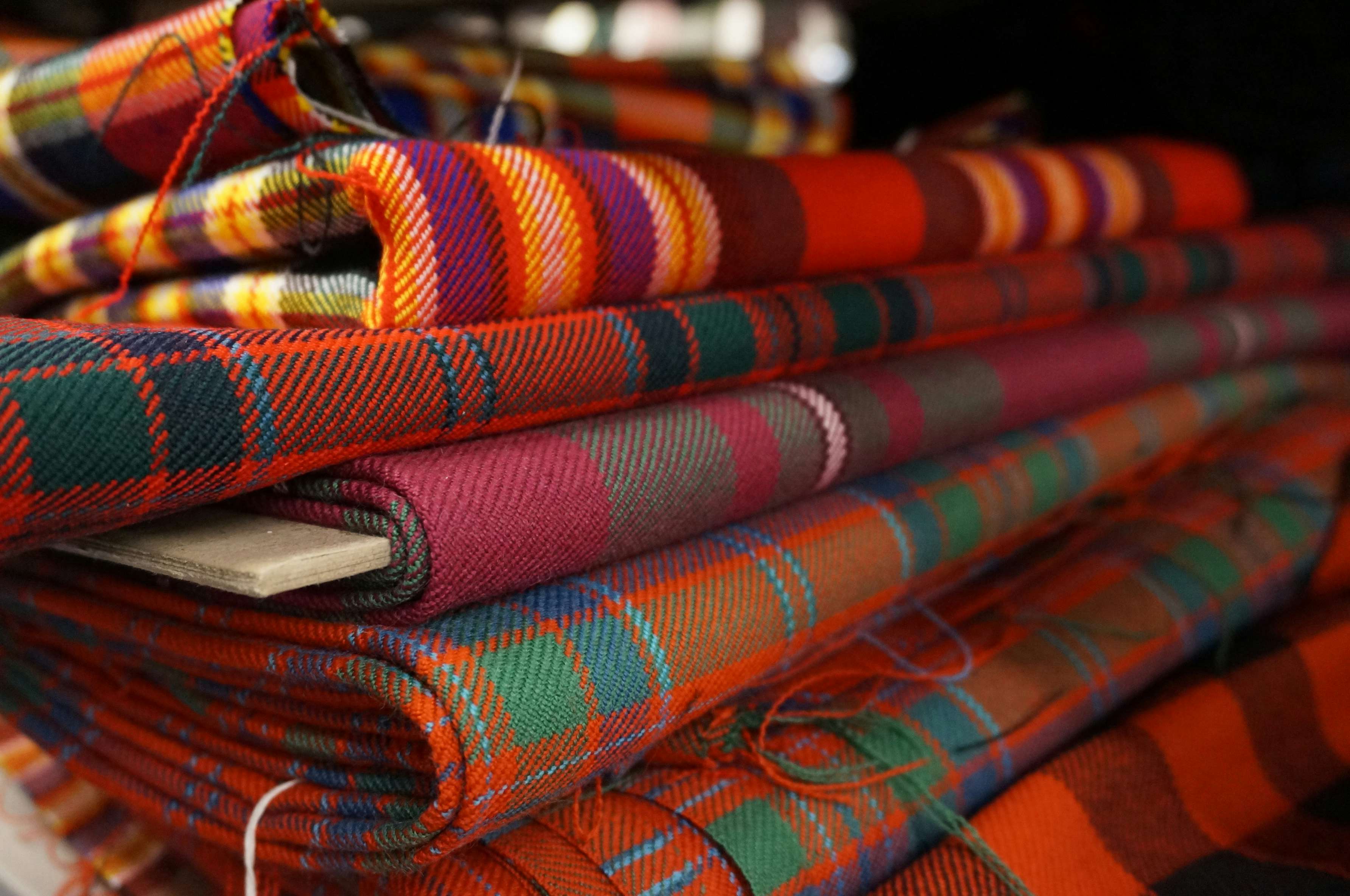 「タータン」は、スコットランド北西部に位置するハイランド地方で発展した織物。たんなるデザインではなく、一つひとつに名前と意味を持つ。スコットランドの由緒あるクラン(氏族)とその家族が身につけられるクラン・タータンや、地域に関連したディストリクト・タータン、軍隊用のミリタリー・タータン、王家が用いてきたロイヤル・タータンなどがあり、18世紀には反逆を恐れた政府がタータンの着用を禁止した時期もあったという。