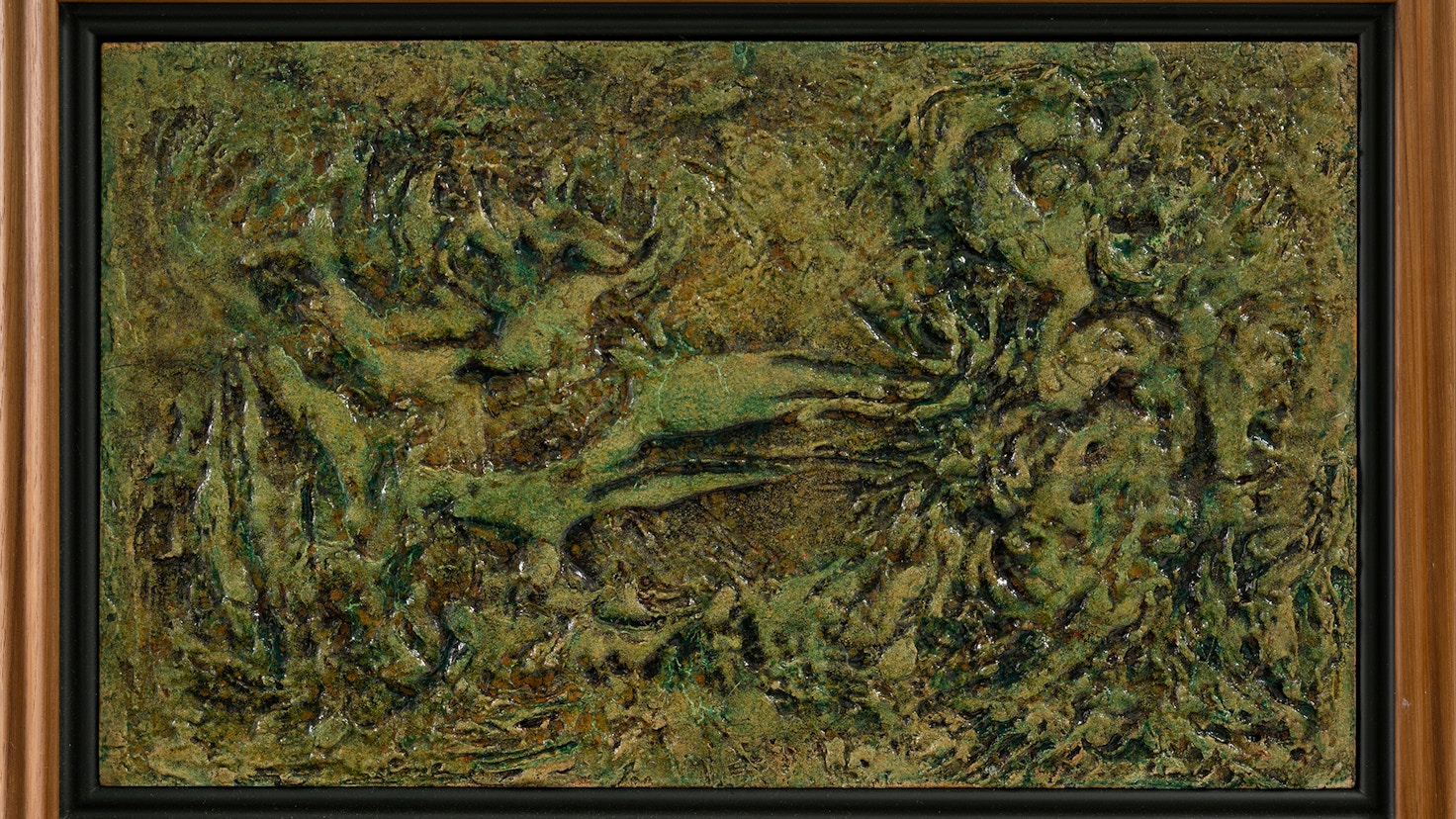 本展では、アンドレ・シェレールのプライベートコレクションより、パリ・モンパルナスのアトリエで制作された宮脇の初期作と、初公開を含む58~62年の作品6点を展示。瀧口の60年以降の未発表作品10点、宮脇旧蔵の瀧口作品4点も並ぶ。