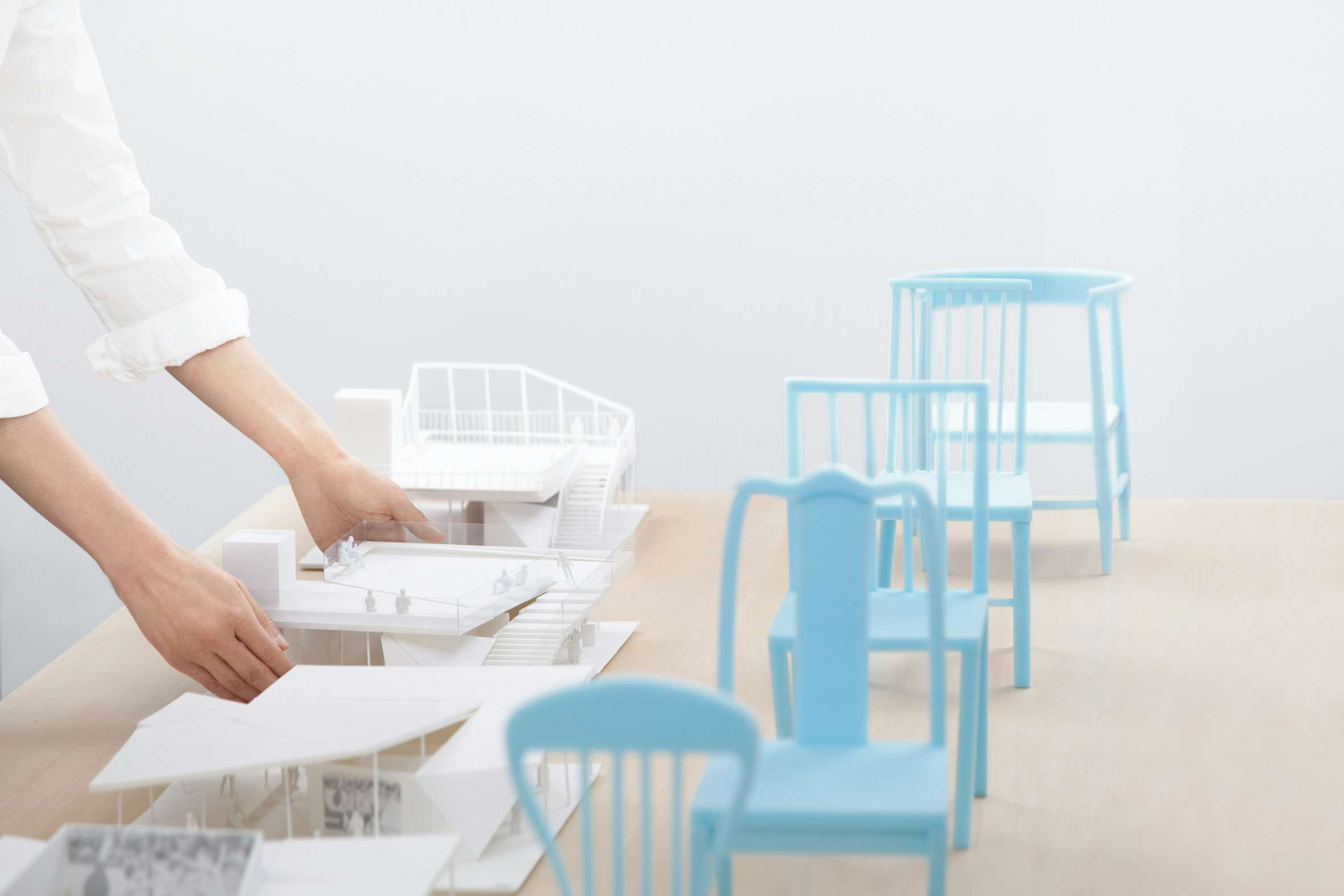 本展では、地元市民の意見を取り入れながら完成させたJR大宮駅前の公共施設《OM TERRACE》をはじめ、各プロジェクトで実際に使用した300余りの模型群や、数千にもおよぶ画像をAIに学習させデザインした椅子。さらに施工風景を含むタイムラプス映像など、かたちが生み出されるプロセスを通じて、藤村の理念と実践を紹介する。