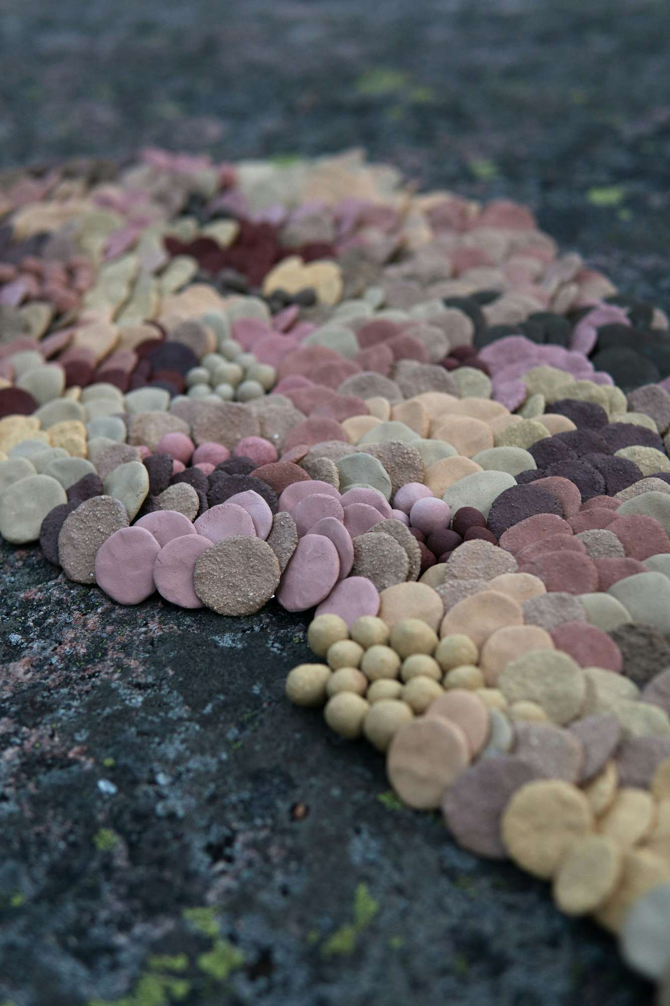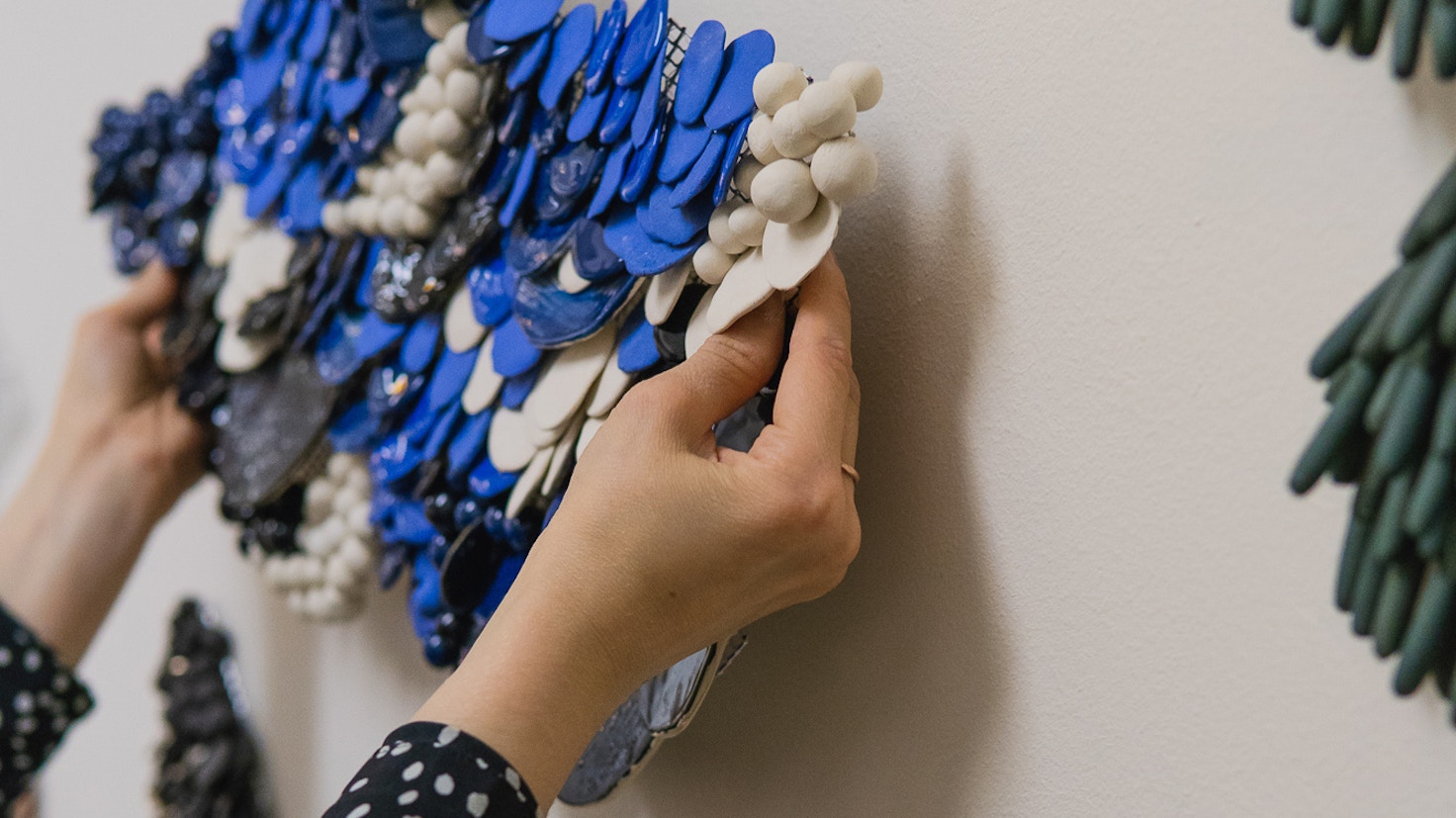 近年は「STUDIO smoo」の活動の延長で、アーティストとして陶の作品を発表。フィンランドの伝統的な文化や豊かな自然、身近な環境からインスピレーションを受けたフオタリの作品は、小さな陶器のピースを編み込んだテキスタイルのようなものから、陶器のパーツを絵具のように使って描いた抽象絵画のようなものまで、その斬新さと手仕事の細密さで見る者を魅了している。