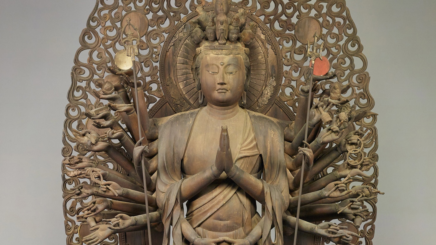 大報恩寺は1220年に義空によって平安京内裏(現・京都市上京区)に近い場所に建てられ、仏師・行快作の《釈迦如来坐像》を本尊とし、千本釈迦堂の通称で親しまれてきた。同寺には、行快の師で、鎌倉の彫刻様式完成の一翼を担った快慶の晩年の傑作《十大弟子立像》ほか、行快とほぼ同世代で、運慶の晩年の弟子である肥後定慶作の《六観音菩薩像》など、鎌倉彫刻の名品が数多く収められている。