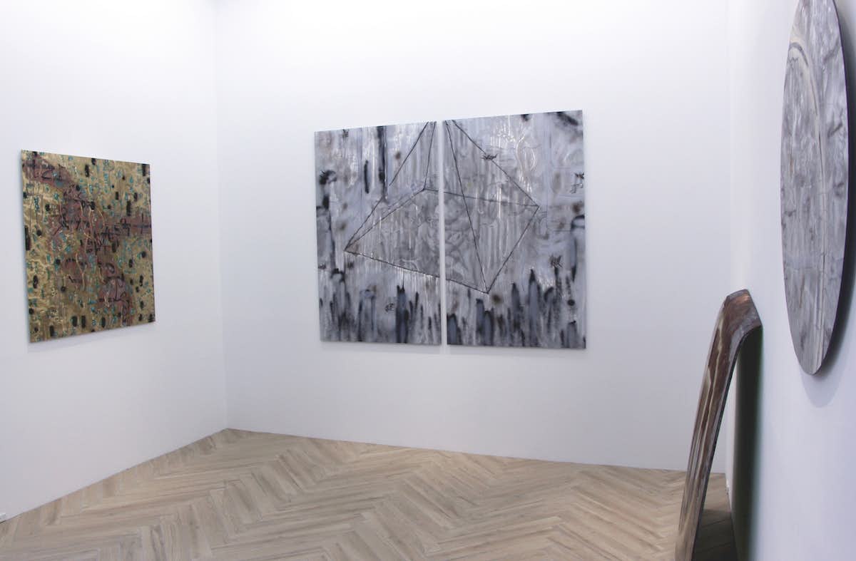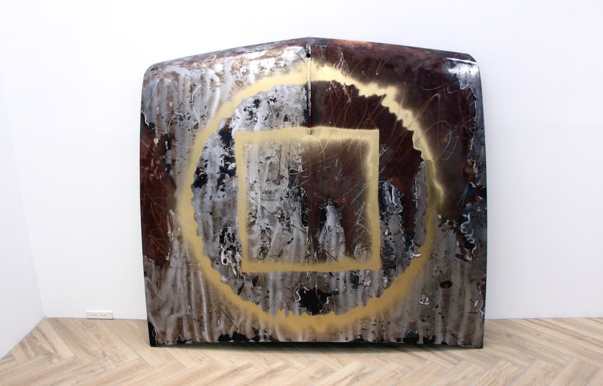 金属板や工業製品に大小の傷やサビなどの痕跡を施し、通常では見ることのできない事象や概念を視覚化した作品を制作する東城信之介の個展。