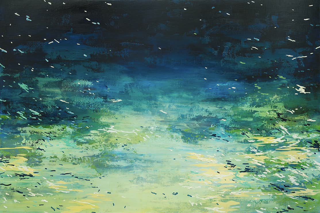 本展では、北城が繰り返し描いてきたモチーフのひとつである「水面」をテーマとした作品を発表。「筆触から、見た人に皮膚感覚でその時の感じを認めてもらうようにするのが難しい」とも語り、一貫して絵画とは何かを問い続けている作家の新たな挑戦を見せる。
