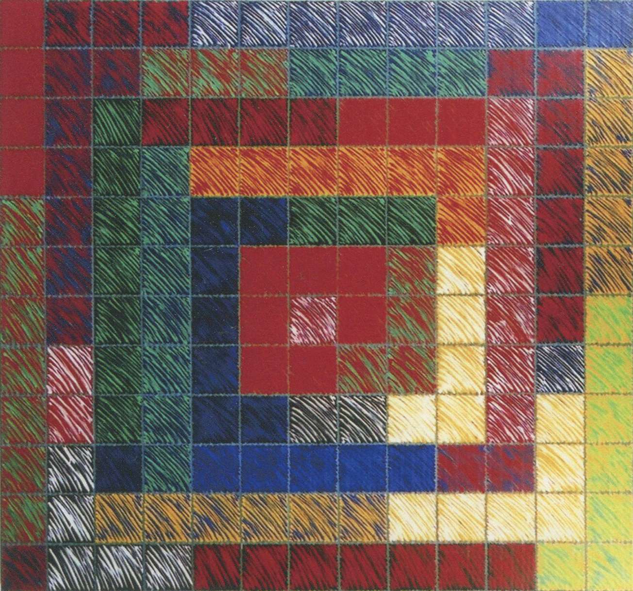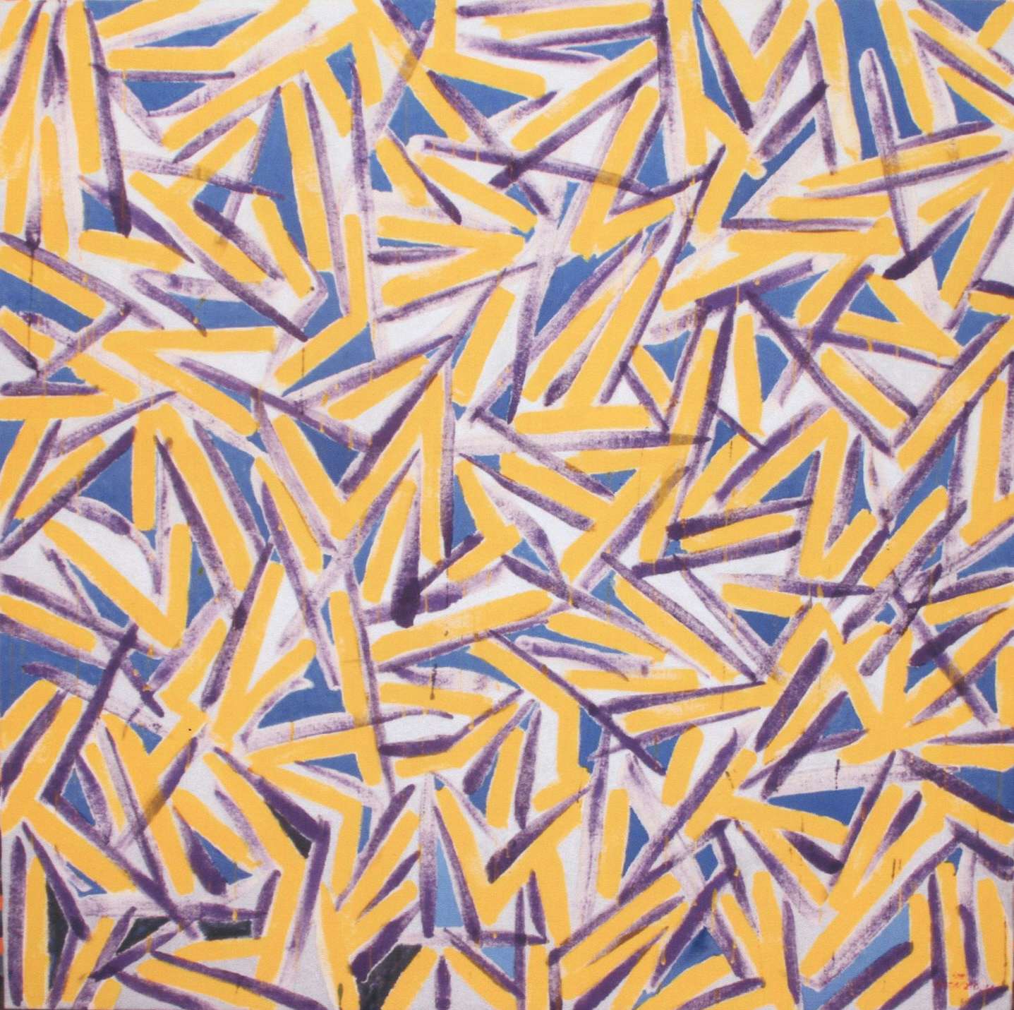 90年代は三角形や六角形を基調にしたモノトーンで、幾何学的な大作や連作を発表。2000年以降、数種類の色を使ったレゴを組み合わせたようなドットで構成された鮮やかでポップなシリーズ「W」「ストライプ」に変容しながらも、長いキャリアの中で時流に流されることのない制作姿勢は、今日の県北におけるアート活動の支柱として再評価されている。