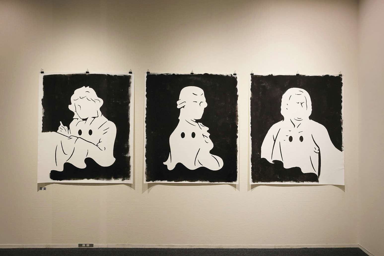 デザイナーの岡田善敬とイラストレーターの倉橋寛之によるアート作品《オバケ!ホント?》は、「何かに布を被せて目を2つつけると、なんでもオバケになる!」と発見した岡田が、倉橋にイラストの制作を依頼したことから生まれた。