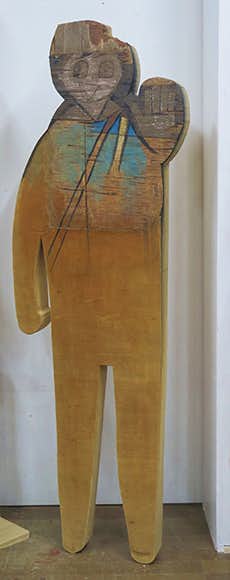 「なおす」という方法を用い、各地で拾った物品を修復・復元してきた青野文昭。本展では道路上で破棄・放置されていた古い「人形・ヒトガタの標識」の破片を収拾し、復元して生み出した彫刻作品を複数展示する。