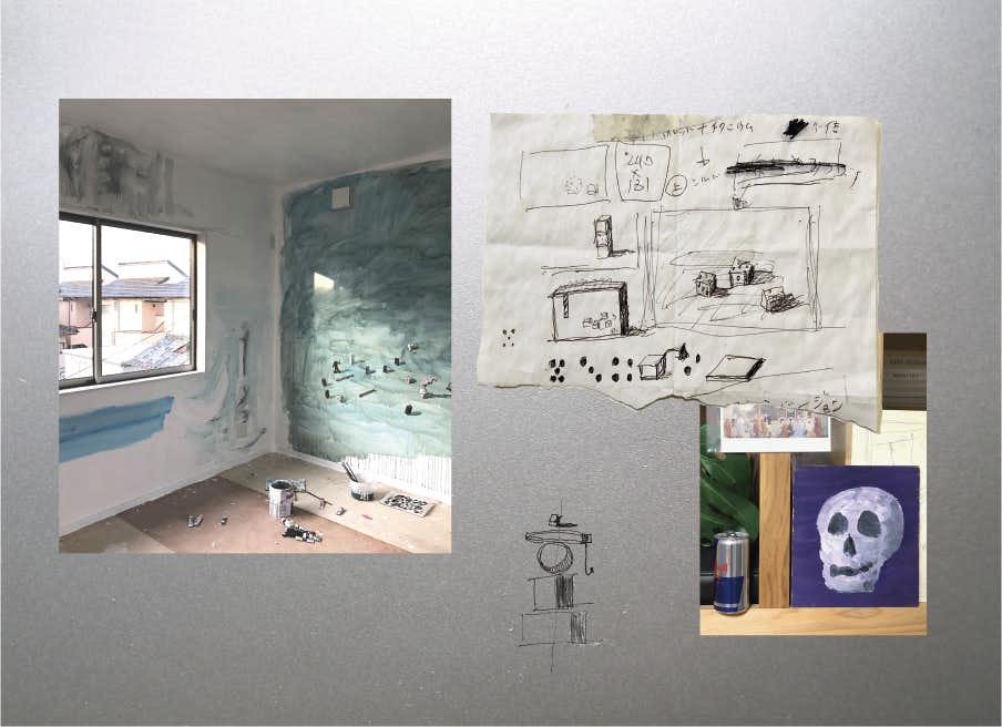 サイコロ、トランプ、フィギュアといった幼少期から身近にあったものを繰り返し描いてきた鹿野震一郎。同時に、展示の仕方や作品の組み合わせによって、作品の見え方を変化させる試みを行ってきた。本展では、ギャラリー空間そのものを新たな装置として機能させ、これまでとは異なるフェーズへと鑑賞者を誘う。
