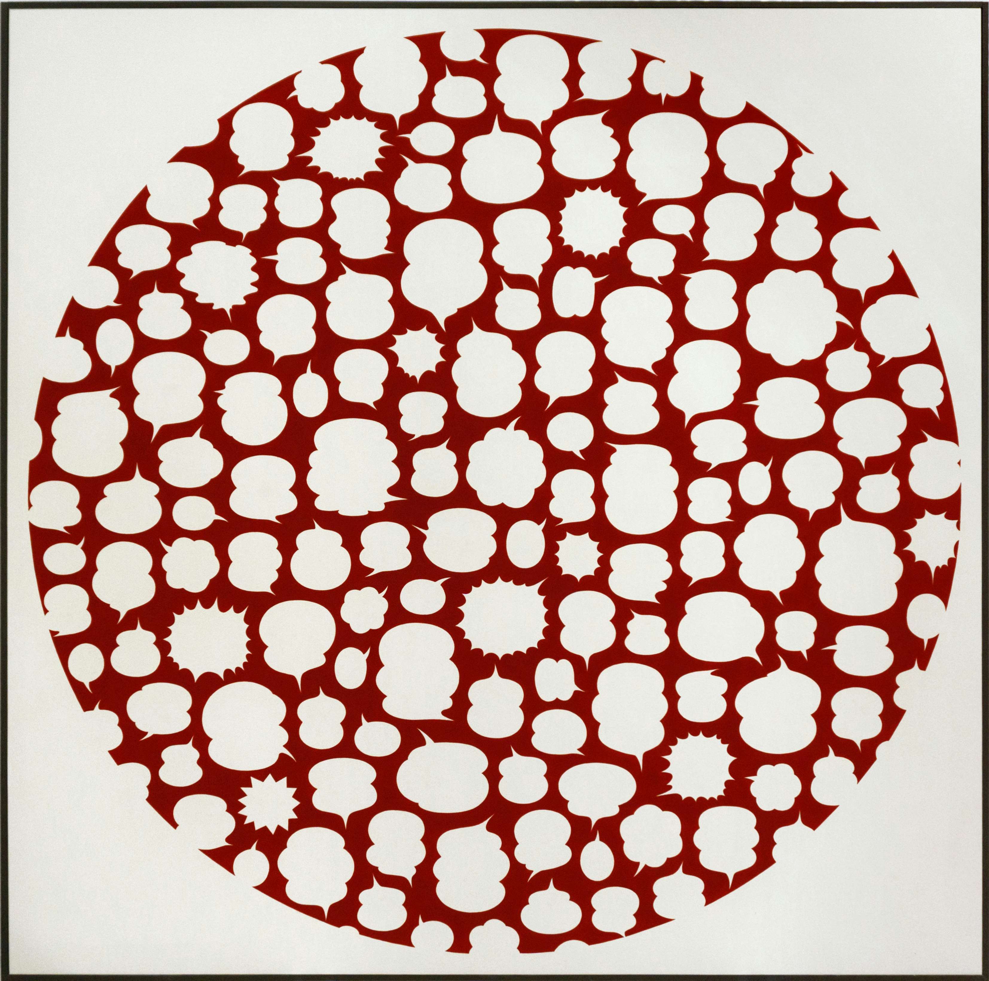 Eメールで使われる顔文字や、ワンルーム・マンションの間取り図、マンガの吹き出しやキャラクターのシルエットなど、現代社会を表象するモチーフを用い、日本画の技法でユニークな絵画を描く中村ケンゴ。近年では2017年の「かけがわ茶エンナーレ」、また横浜美術館に所蔵される《コンポジション・トウキョウ》が2018年3〜6月まで開催されたコレクション展に展示され注目された。