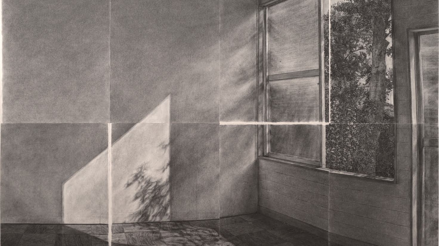 本展は、2005年以降の作品からセレクトされた大型の風景素描画と新作で構成。川辺での制作で太陽の光に輝く紙の白さに魅せられながら、風景とともに過ごした日々の記憶が描かれている。