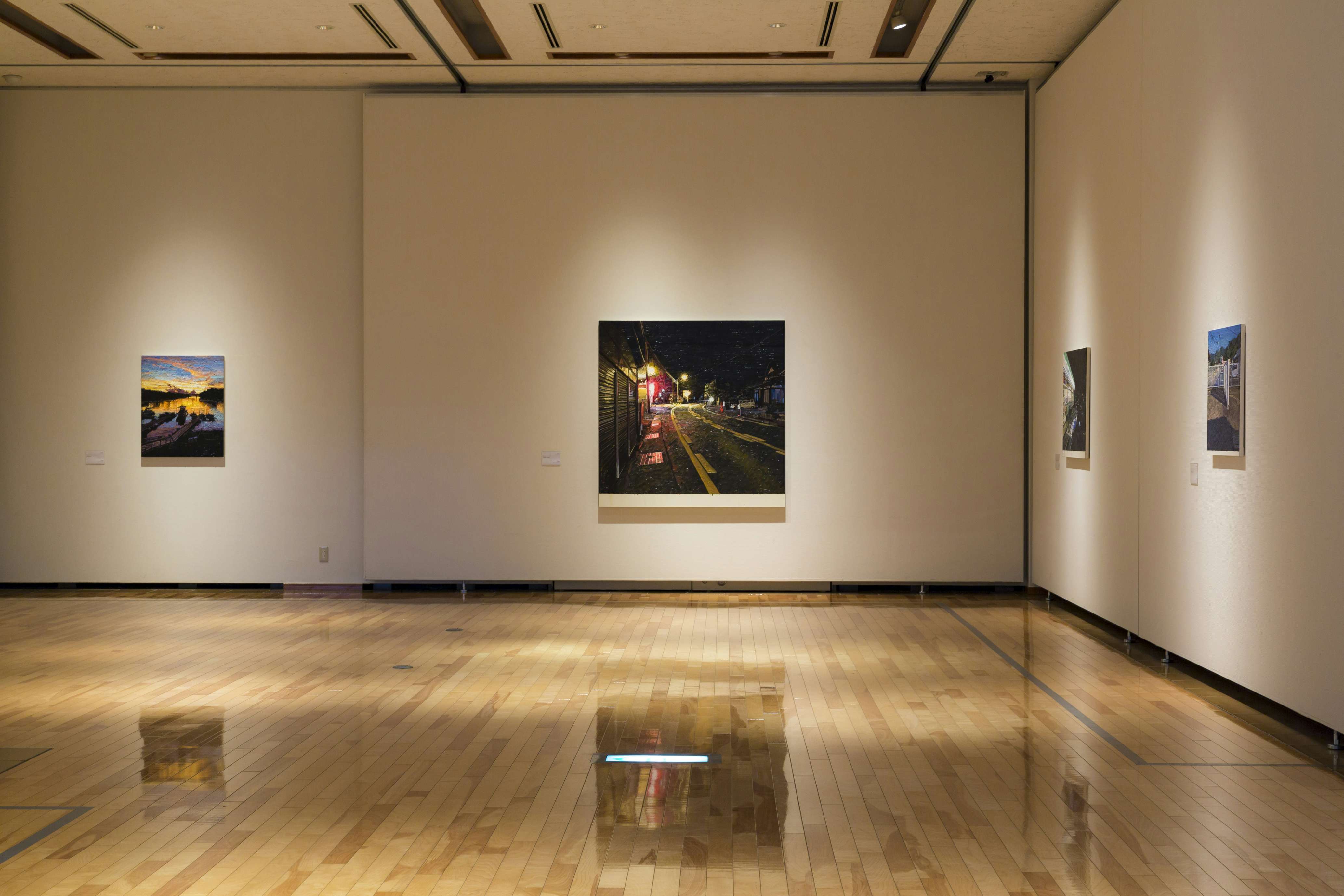 成果展では、津奈木町の滞在中に様々な人や風景と出会い、旧平国小学校で制作した作品を披露。都市近郊を描き続けてきた富田が切り取った津奈木町の風景や、保育園の子供たちの協力を得てつくられた実験的な作品となる。