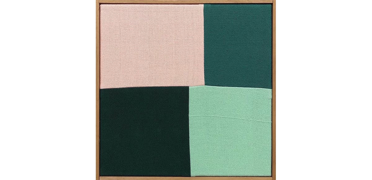 クックは1983年アメリカ出身、ニューヨークを拠点に活動。正方形または長方形、4〜5色の綿布を組み合わせて絵画化し、キャンバス、フレーム、色、質感といった絵画を構成する基本要素について考察している。