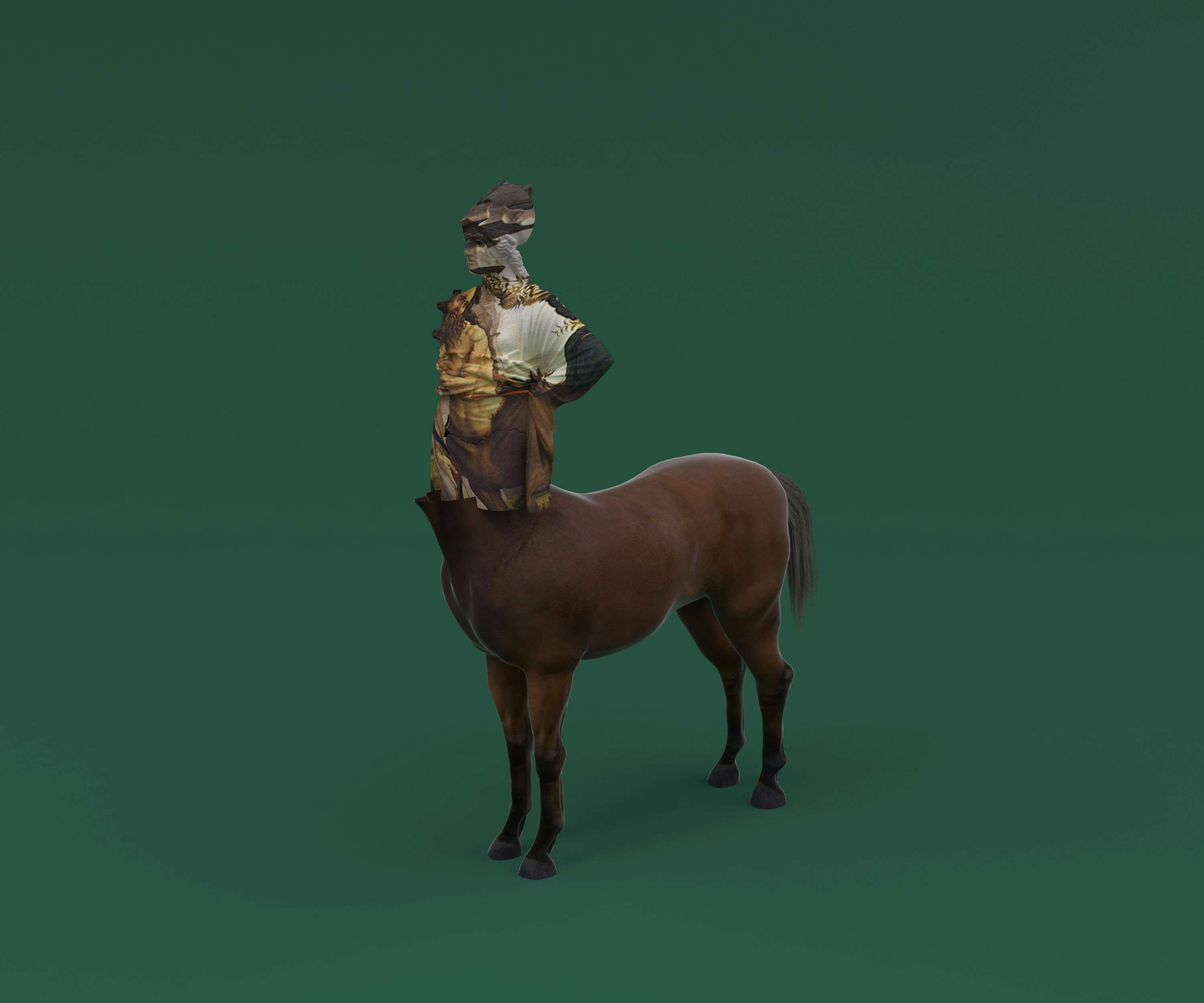 本展では、置物、動物、自転車などの乗り物、家具、植物などの3Dデータを自身の「文法」によって組み立てた新作などを展示。撮影したような視点で切り取られ紙に出力された仮想空間のオブジェクトは、仮想現実と現実、立体と平面の関係性を浮かび上がらせる。