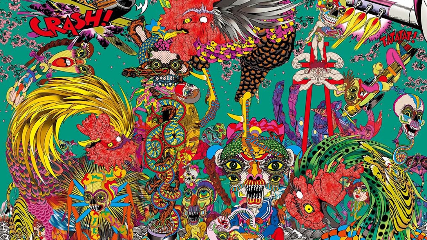 田名網は近年、自身の記憶や夢を原風景に、自身の80年以上もの歴史を記したいわば「曼荼羅図」の制作に取り組んでいる。一見すると奇怪でありながらもポップな妖怪画のように見える田名網の近作だが、そこに描かれているのは田名網の実体験に基づく様々な記憶だ。アメリカンコミックを引用したアメリカの爆撃機、その中で光を放つ擬人化した爆弾などは、田名網が幼少期に実際に見た戦争の記憶に深く関係をしている。新作の大作「彼岸の空間と此岸の空間」に登場する「鶏」のイメージは、田名網が1975年に制作した映像作品「Crayon Angel」の中にも既に登場しているように、機銃掃射のために低空へと急降下をする戦闘機のメタファー。同様に、骸骨姿の様々なモンスターたちは、戦争で傷ついた人々であり、恐れを知らぬ私たち自身を暗示する。