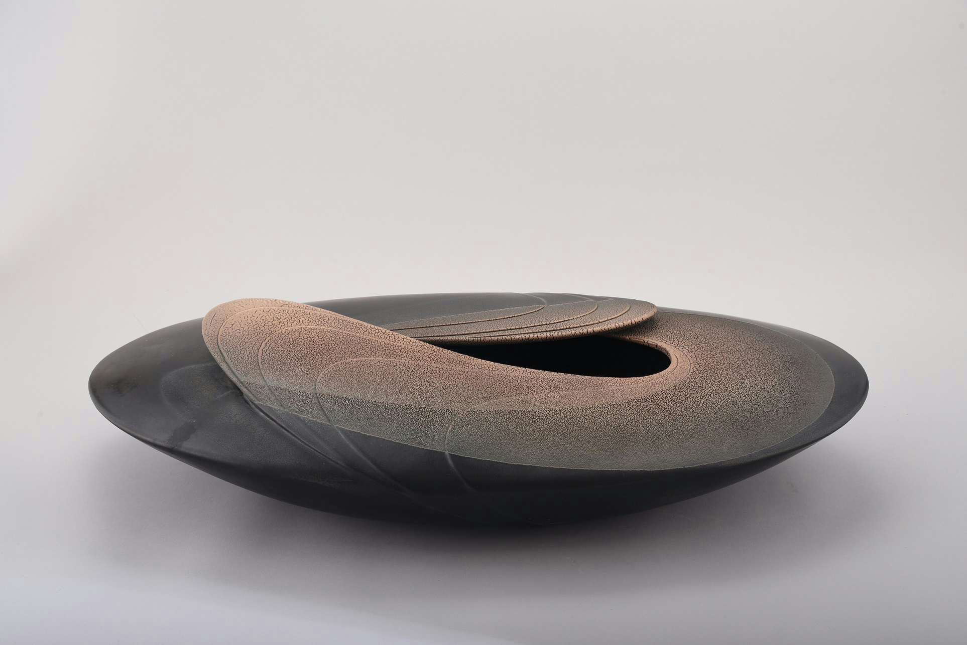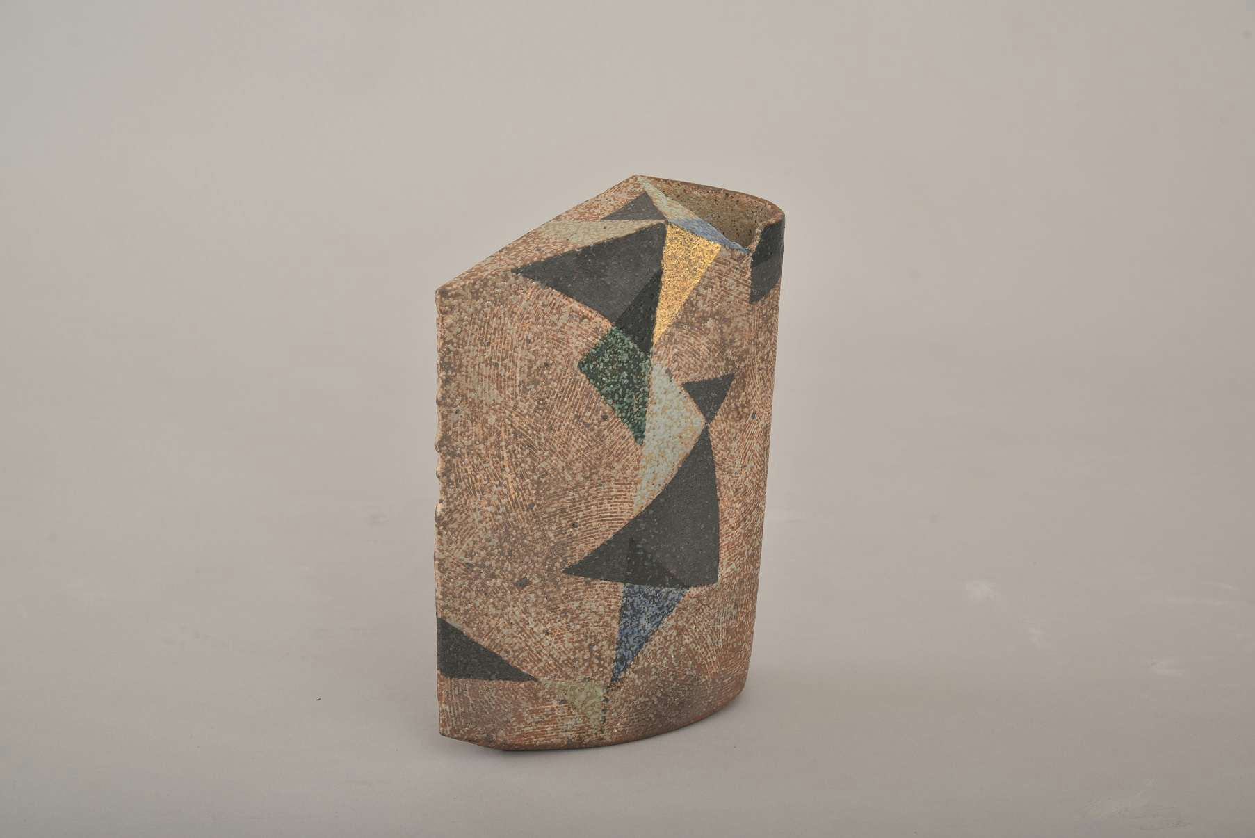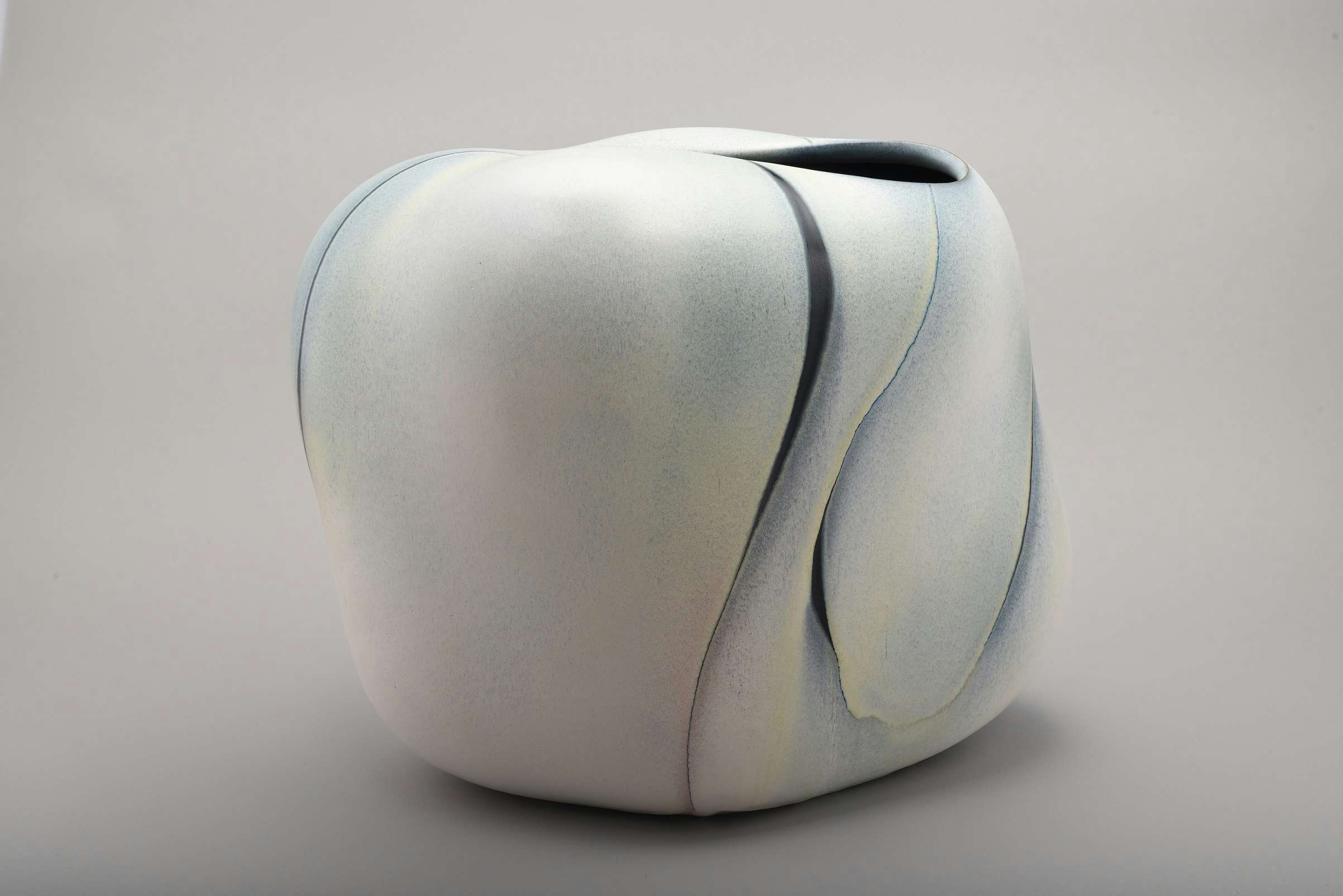 武蔵野美術大学彫刻科卒業以降、高浜市で創作活動を続けてきた森。釉薬の美しさを際立たせる造形、いぶし銀を柔軟に感じさせる幾何学的な構成、そして三河土の温もりを生かした彩色の作品は、やきものでありながら軽やかでしなやかな印象を与え、時代を経るごとに挑戦的なものから自然に溶け込むような緩やかなかたちへと変化している。