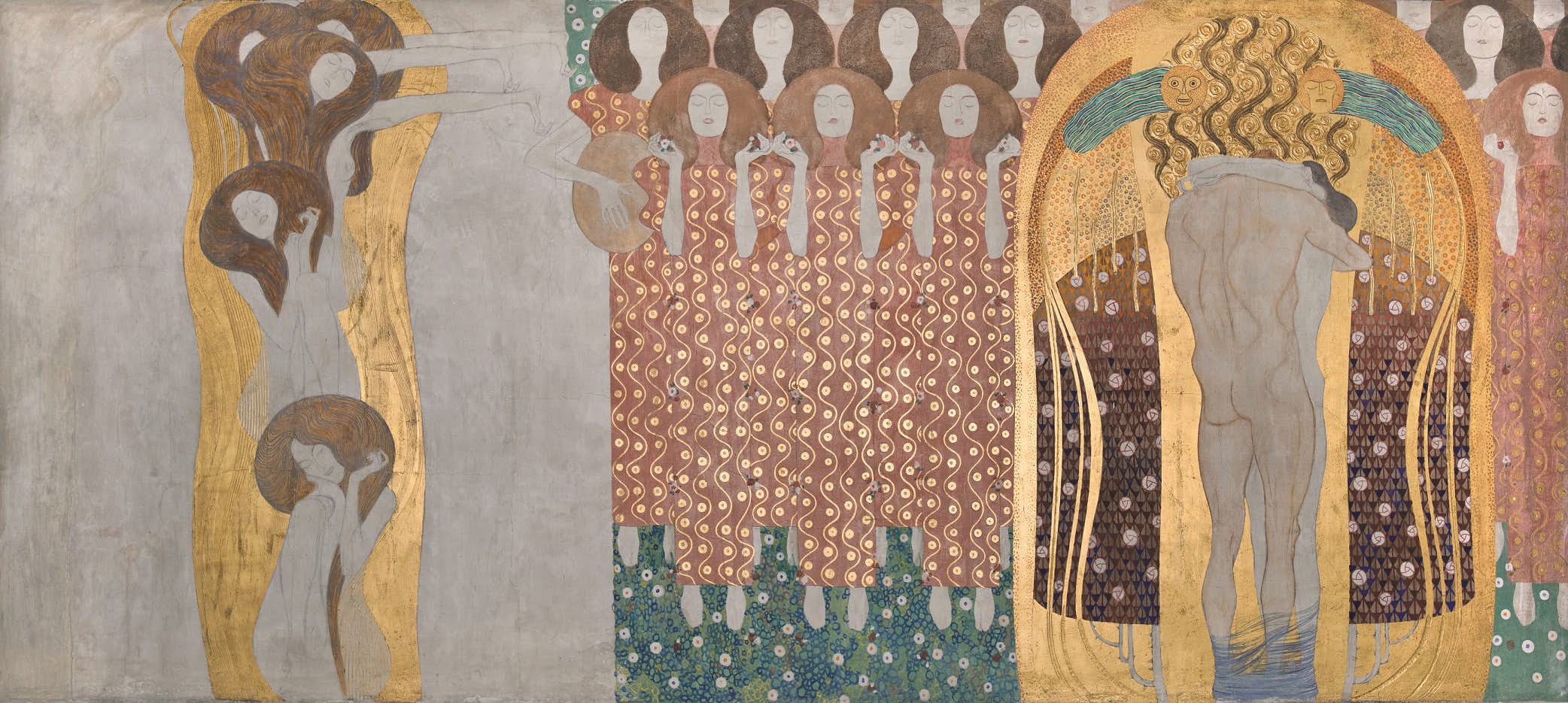 このほか、ウィーンの分離派会館を飾る、全長約34メートルの壁画《ベートーヴェン・フリーズ》の精巧な複製による再現展示や、同時代のウィーンで活動した画家たちの作品や、クリムトが影響を受けた日本の美術品などもあわせ、ウィーン世紀末美術の精華を展観する。