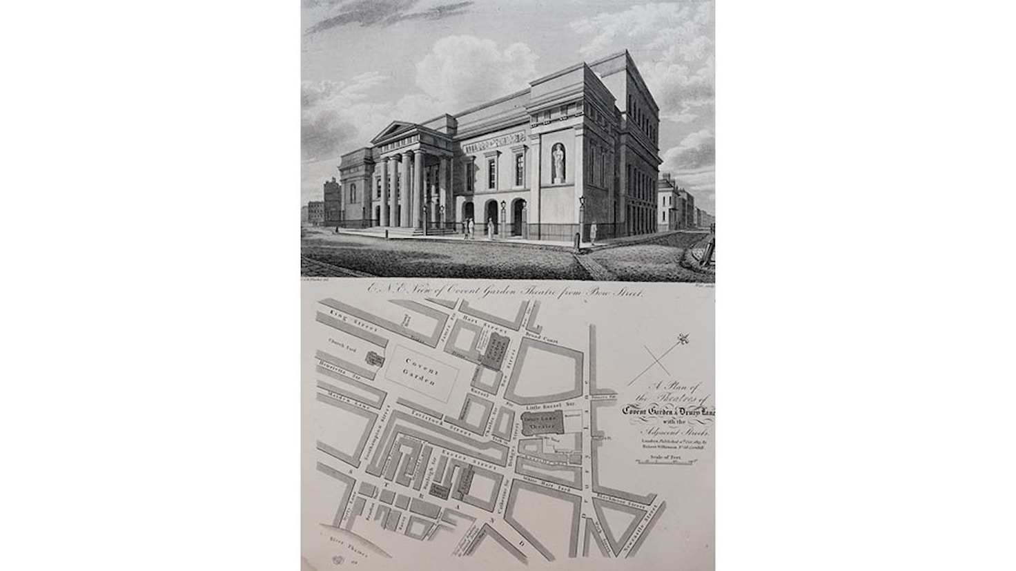 本展は、ウエストエンドで花開いた英国劇場建築の美しさを伝える、地図制作を手がけたロバート・ウィルキンソン(1768-1825)が1834年出版した建築文献より抜粋したビジュアル16点を展示。シアターロイヤルとその火災の様子を記した資料、クリストファー・レン設計によって新たに建築されたドルリー・レーン王立劇場の一連のビジュアルが見どころとなる。