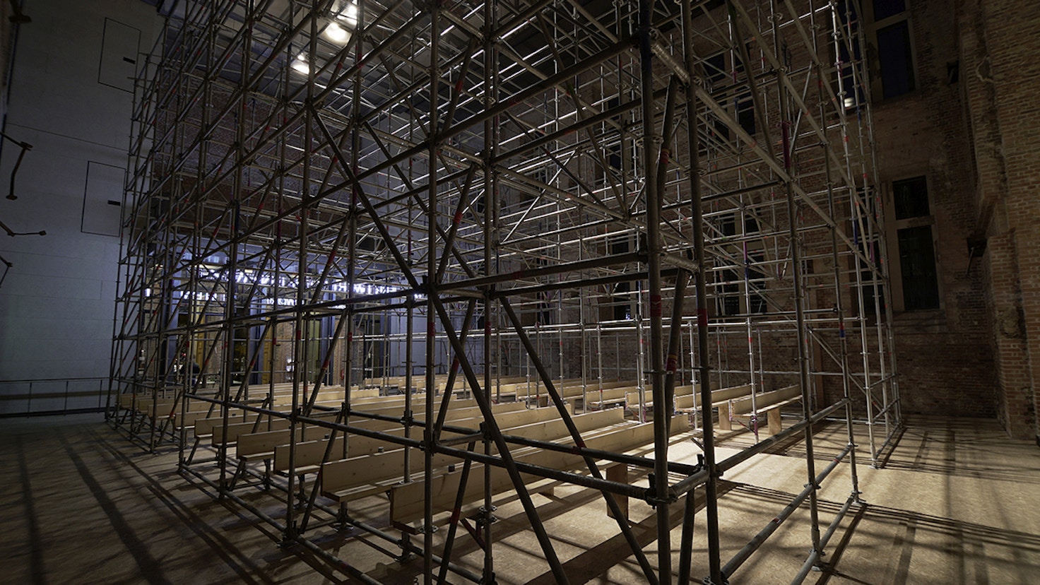 個人と歴史上の出来事を普遍的な問題を媒介とした多様な作品を展開する川久保ジョイ、教会内に単管パイプからなるインスタレーションなど、空間実験によって建築の本質を探る池ヶ谷陸、アクリルミラーを使い、見えない何かを感じさせる風景を立ち上げる木村恒介、国家や戦争への冷静への眼差しを映像化する柳井信乃(後期)。