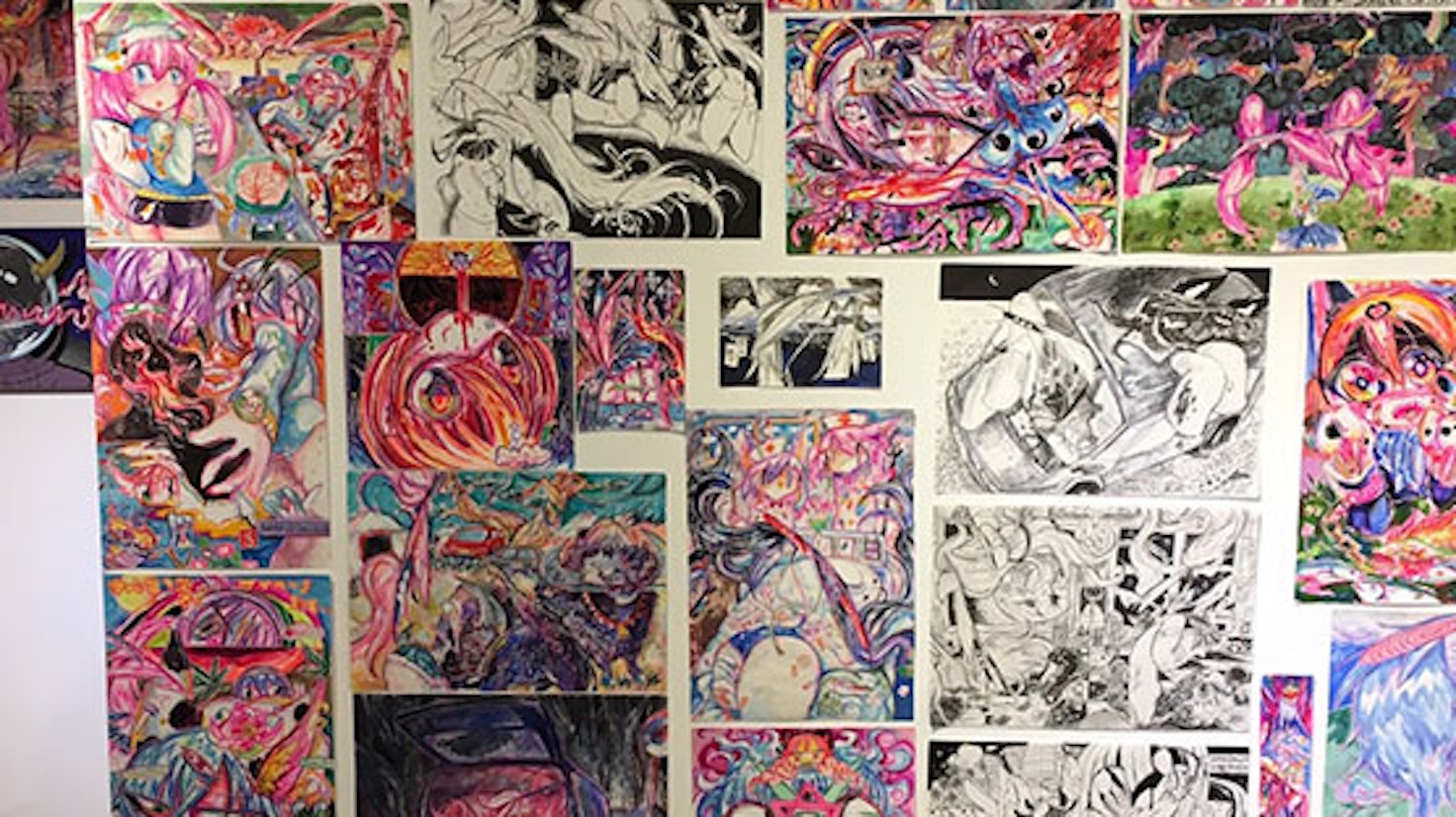 ク渦群(くかむら 1993年生まれ)は、過去にも何度かカオス*ラウンジの展覧会に参加する若手ペインターで、様々な風景の中にデフォルメされたキャラクター配置するというスタイルを続けている。ク渦群の描くキャラクターは多くの場合、不穏な風景のなかで、まるで極限状態に置かれているかのように怯えたり、怒ったり、焦ったり、憔悴する。