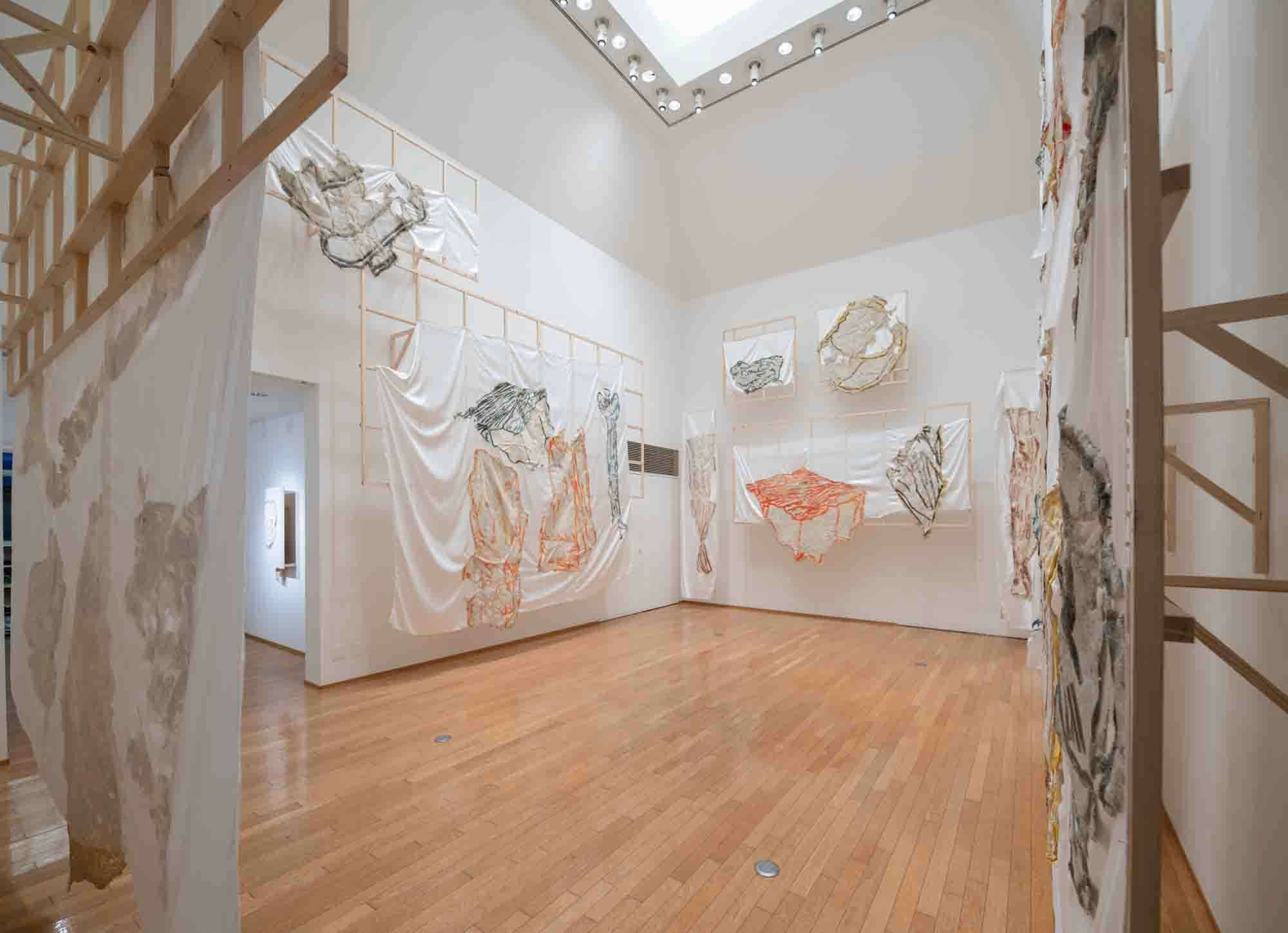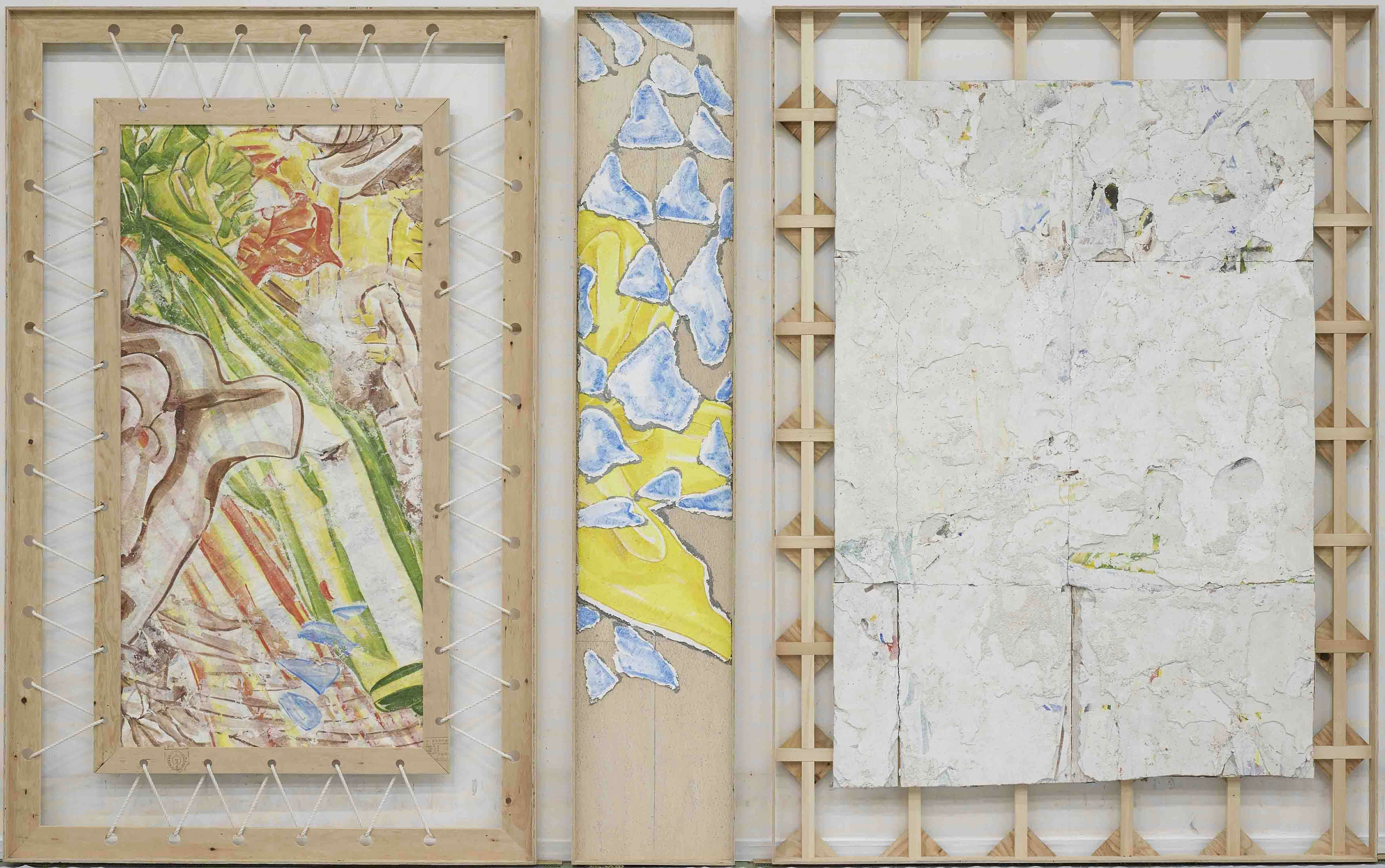 川田は1987年大阪府生まれ、京都市立芸術大学大学院美術研究科絵画専攻(油絵)修了。既設の壁面や自作の仮設壁面などに展開する作品を制作。近年は建物を構成する壁から派生し、別の支持体へ壁面を移動させることで、壁が持っていた記憶をトレースする作品を発表している。