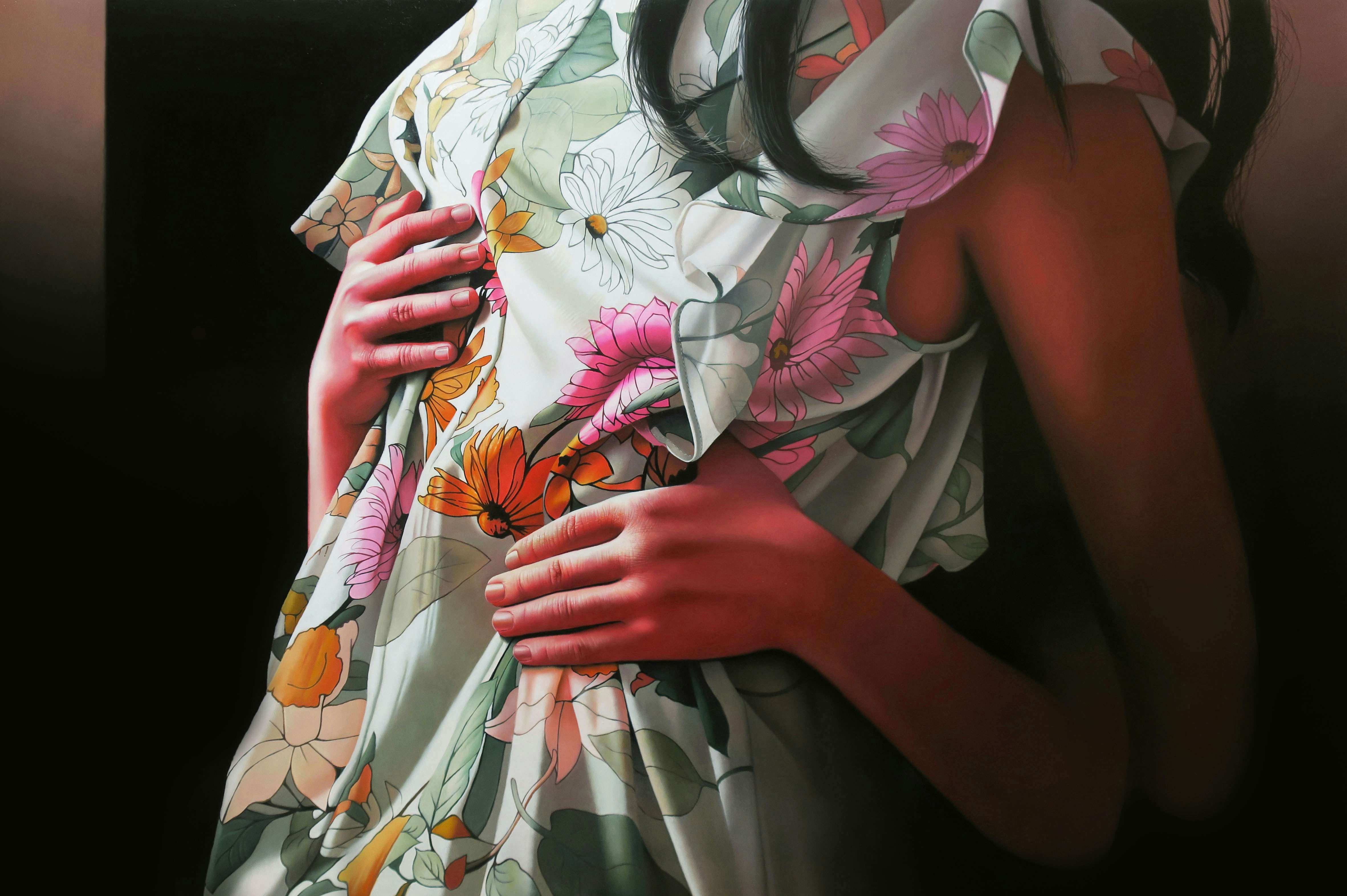 写実的でどこか劇的な印象を与える松川の絵画は、同世代の女性たちへのインタビューを通して生まれたもの。対話のなかで印象に残ったフレーズを作品のモチーフとして、タイトルにつけている。近年は作品を通して、シングルマザーとして子供を育てる自身の環境や経験の中に生じる困難や葛藤とも向き合うようになったという。