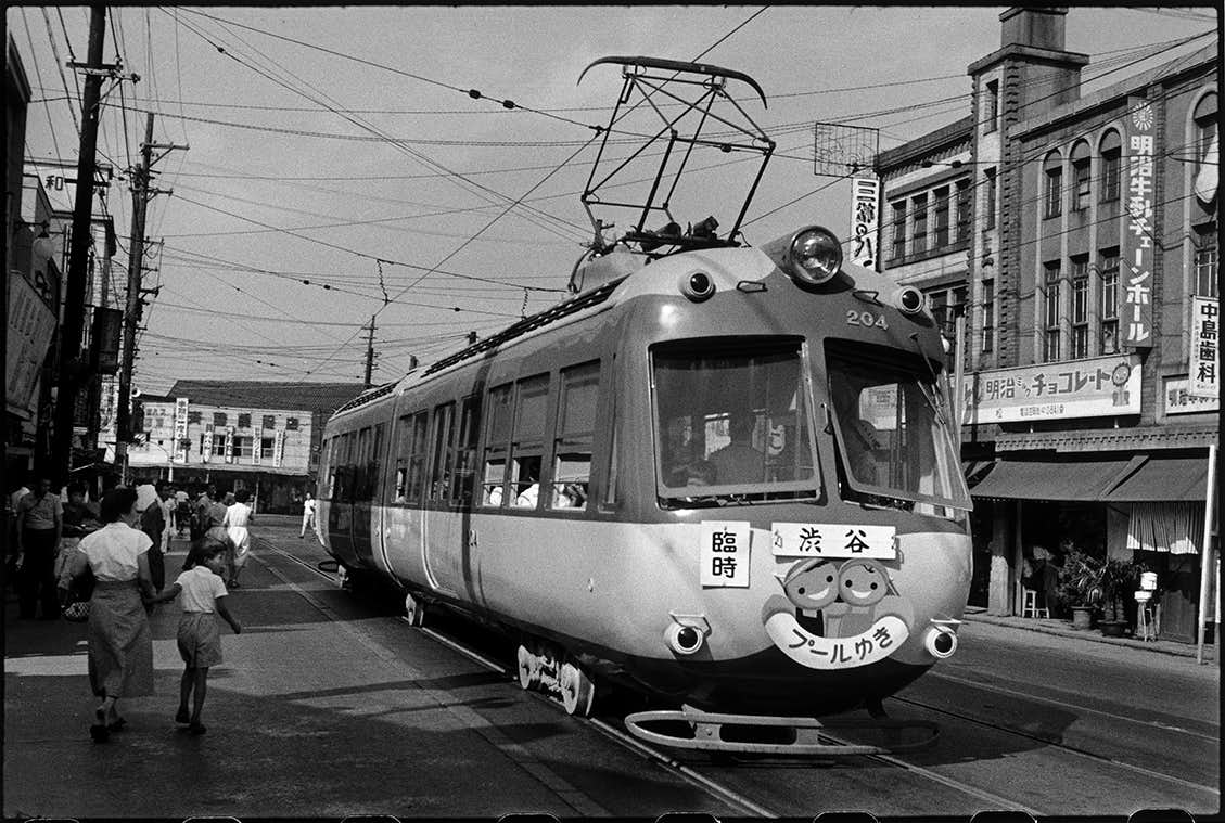 本展では、北は旭川から南は鹿児島まで、市民の足として親しまれてきた全国33路線の路面電車を写すモノクロ作品98点を展示。日光の神橋横を渡る日光軌道線や、原爆ドームを背景に走る被爆電車など、地域の特徴をとらえた作品をはじめ、子供を抱きかかえながら乗車する女性や、線路の雪かき作業をする人々、また、廃線となった東京急行電鉄・玉川線など、日本の懐かしい風景とともに、路面電車と人々の深いつながりを感じることができるだろう。