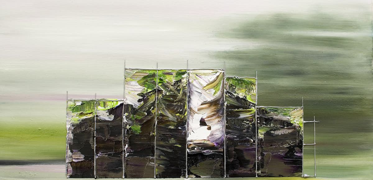 2015年後半からは徐々に目を外に向け始め、「under construction or destruction」という新シリーズを携え、本格的に再始動している。シリーズ「under construction or destruction」は、街でしばしば見かける養生シートで覆われた建設中の建造物をモチーフにした作品群。そこには環境や自然に対する作家の深い思いや考察が反映されている。